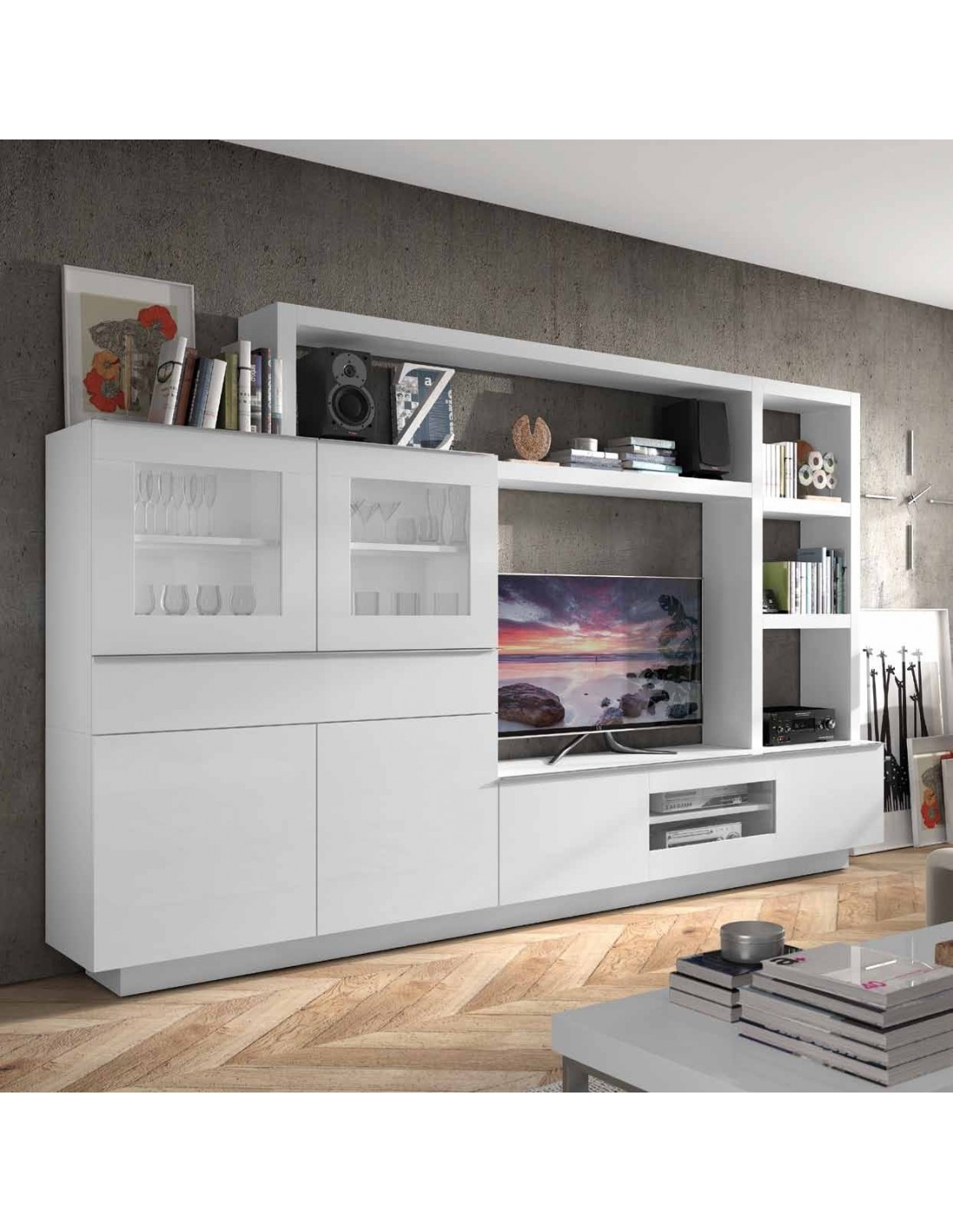 Composicion modular de salon moderna con vitrinas muebles colgados a diseño (124)