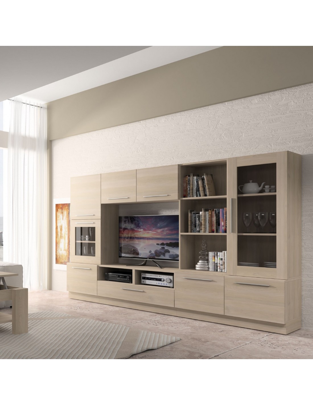 Composicion modular de salon moderna con vitrinas muebles colgados a diseño (209)