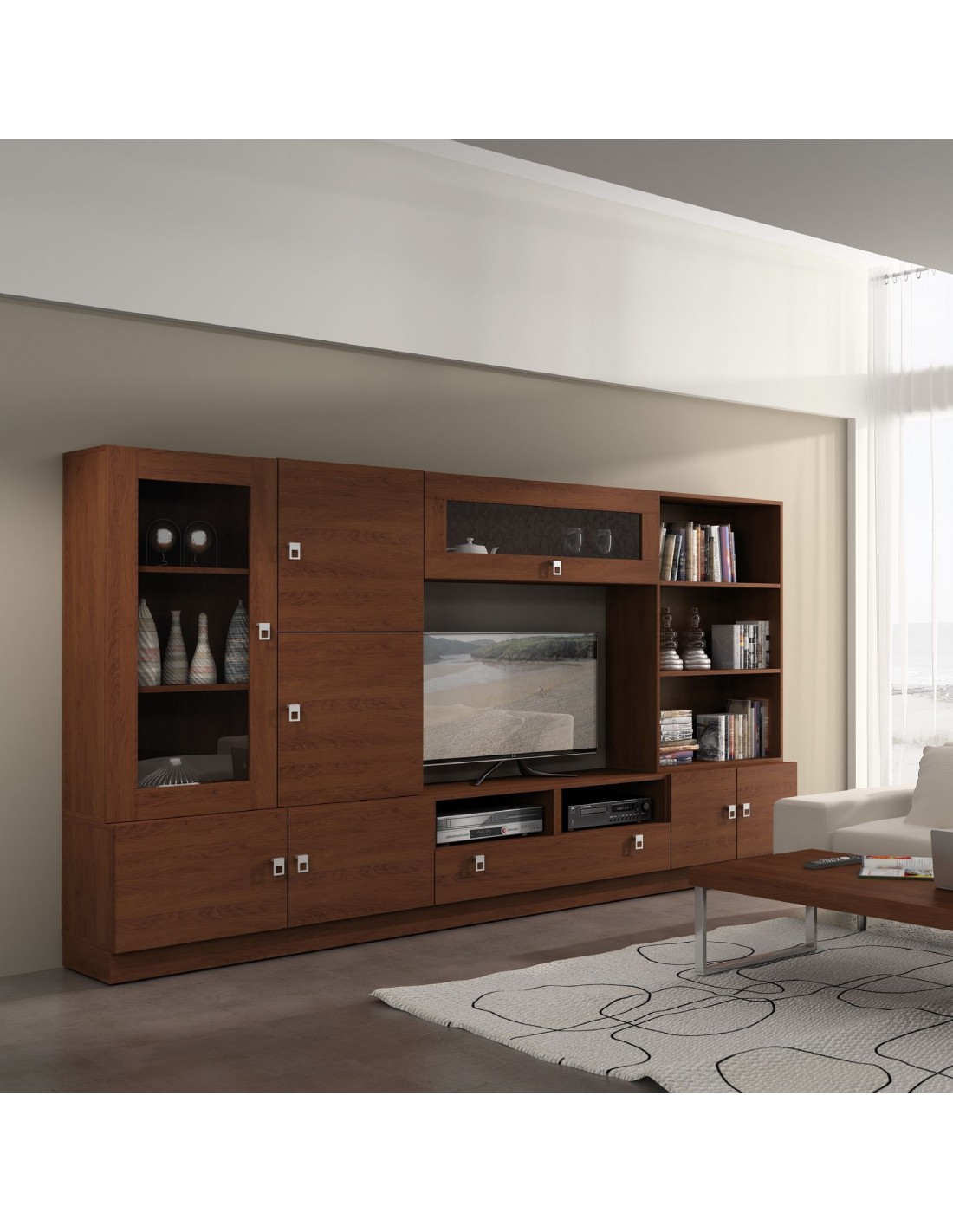 Composicion modular de salon moderna con vitrinas muebles colgados a diseño (210)