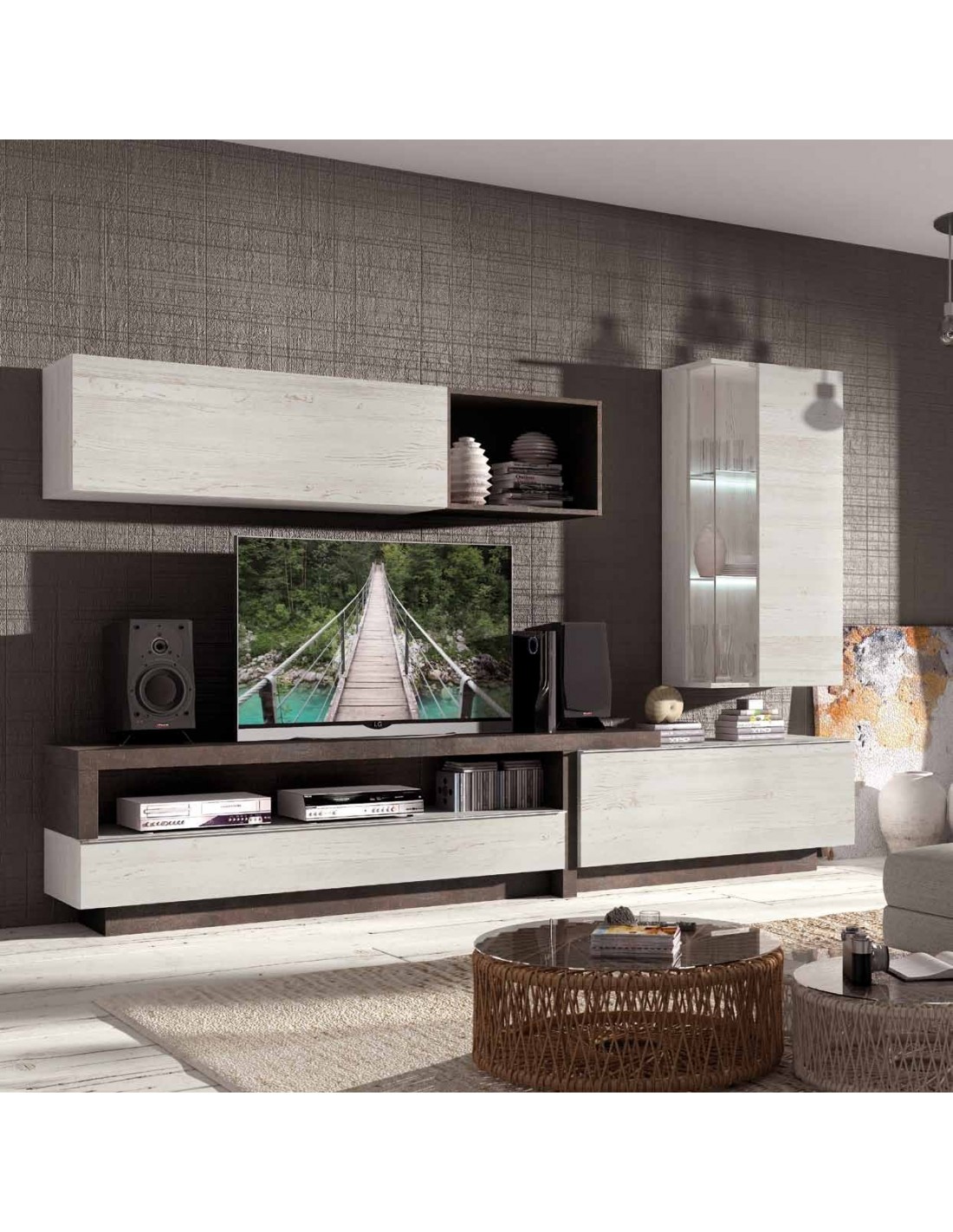 Composicion modular de salon moderna con vitrinas muebles colgados a diseño (85)