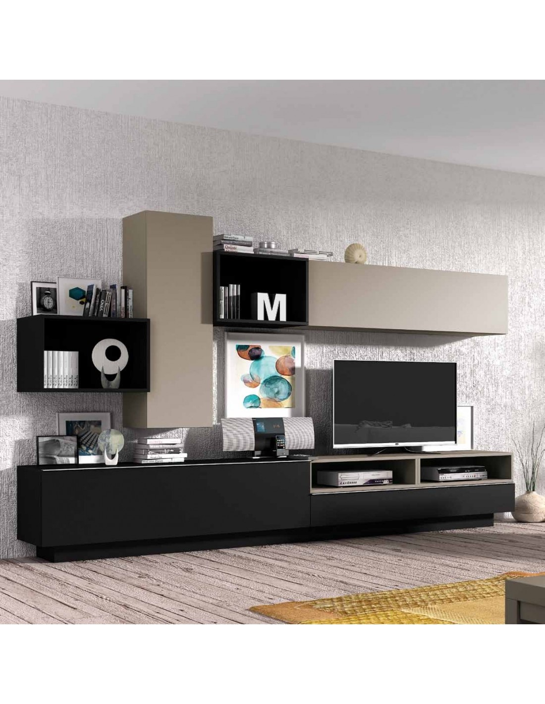 Composicion modular de salon moderna con vitrinas muebles colgados a diseño (99)