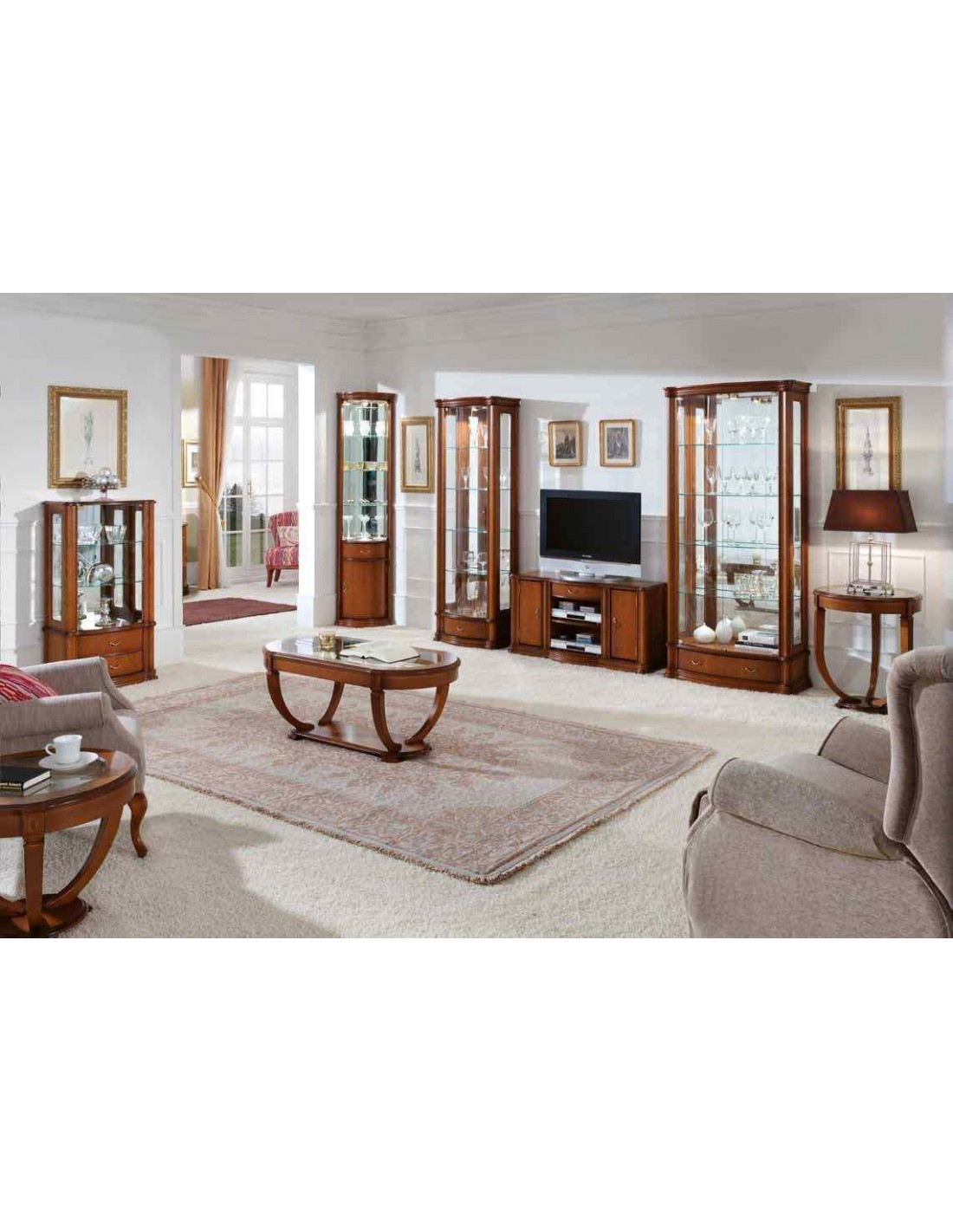 Composiciones de salon completo diseño clasico con vitrinas y cristaleras (5)