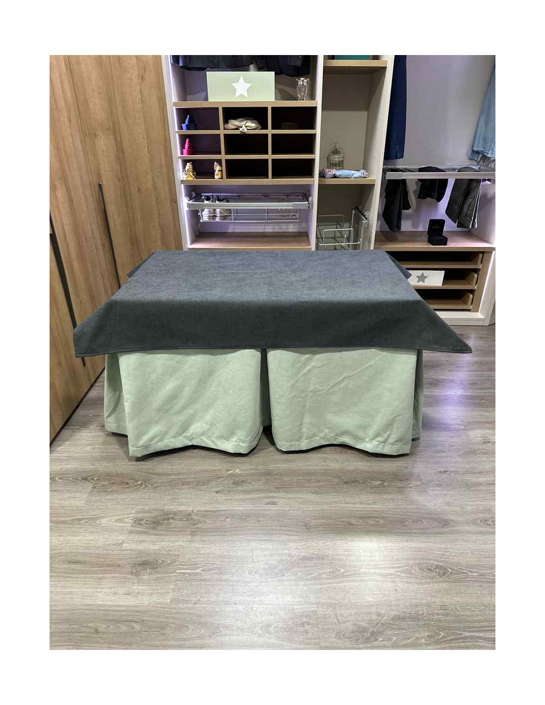 Conjunto Antimanchas Aterciopelada Triplegrueso color Verde Pastel con Tapete Liso Grafito