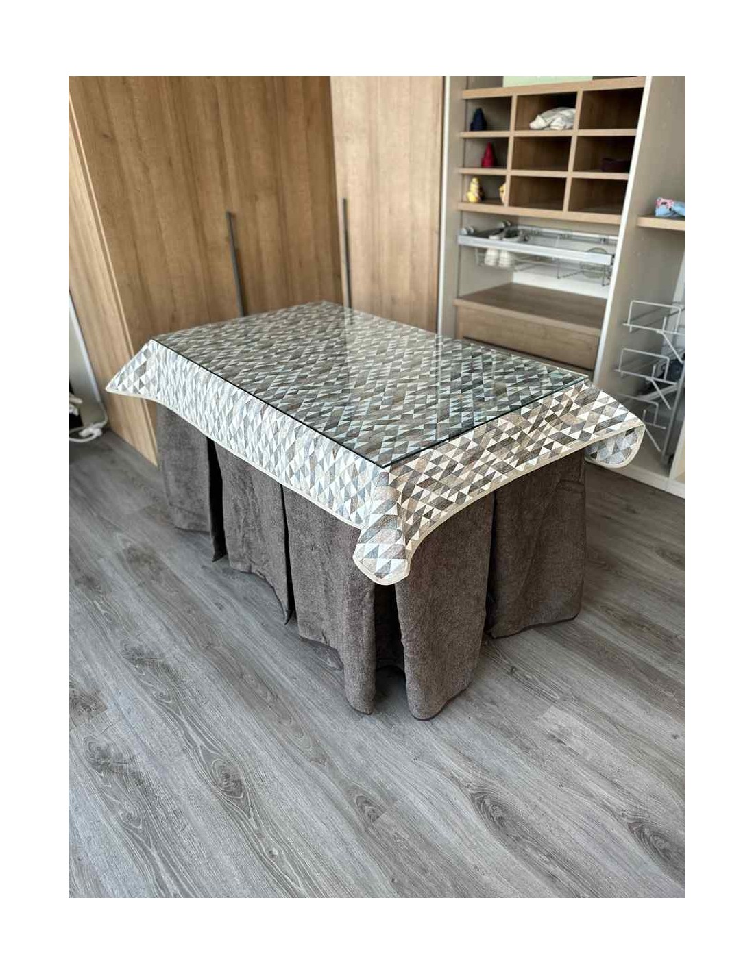 Tapete de diseño para crear ambientes en cada rincón de tu casa. La mesa de camilla es un producto que te permite decorar estancias y darles un ambiente acogedor a tu casa. Además evita las manchas cotidianas al comer ya que cubre la parte alta de la ropa de mesa camilla protegiendola de manchas inoportunas. Muy fácil y cómodo de lavar.