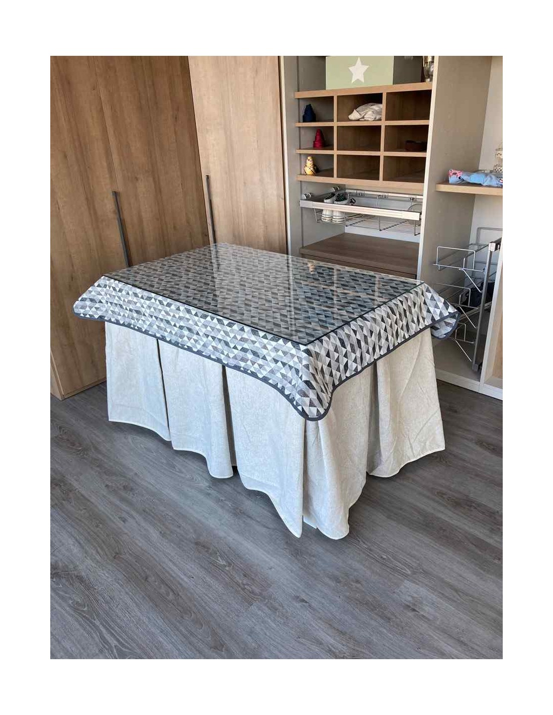 Tapete de diseño para crear ambientes en cada rincón de tu casa. La mesa de camilla es un producto que te permite decorar estancias y darles un ambiente acogedor a tu casa. Además evita las manchas cotidianas al comer ya que cubre la parte alta de la ropa de mesa camilla protegiendola de manchas inoportunas. Muy fácil y cómodo de lavar.