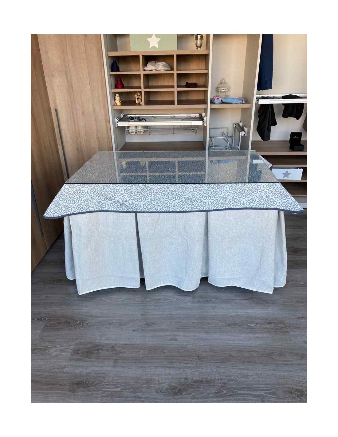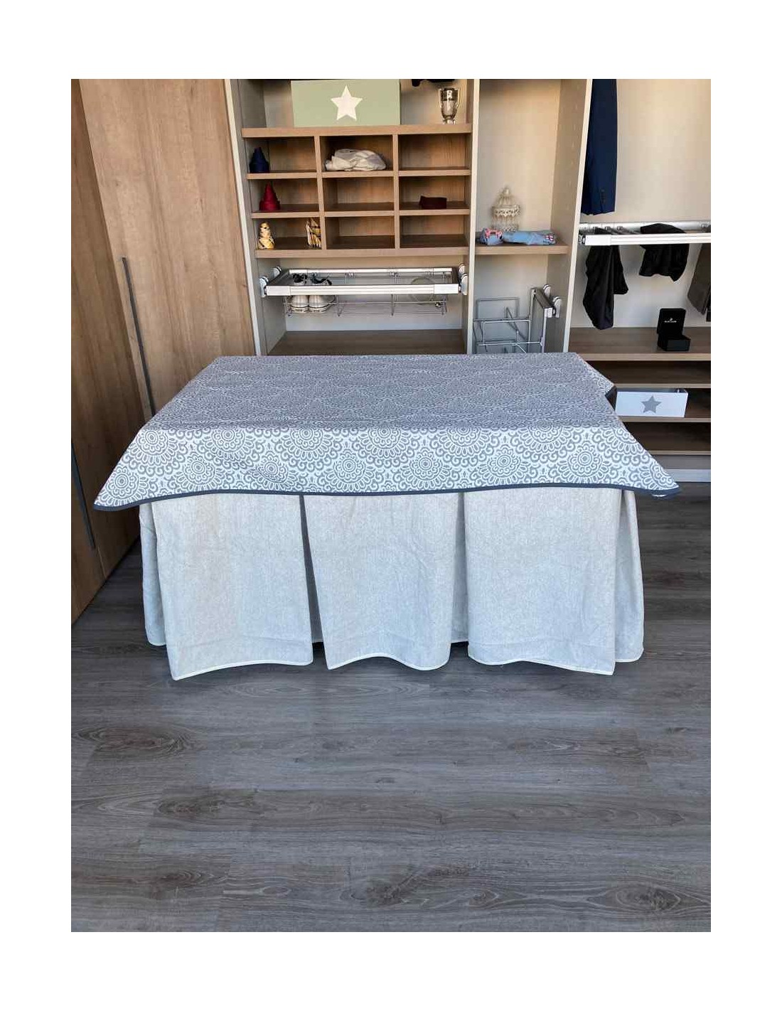 Tapete de diseño para crear ambientes en cada rincón de tu casa. La mesa de camilla es un producto que te permite decorar estancias y darles un ambiente acogedor a tu casa. Además evita las manchas cotidianas al comer ya que cubre la parte alta de la ropa de mesa camilla protegiendola de manchas inoportunas. Muy fácil y cómodo de lavar.