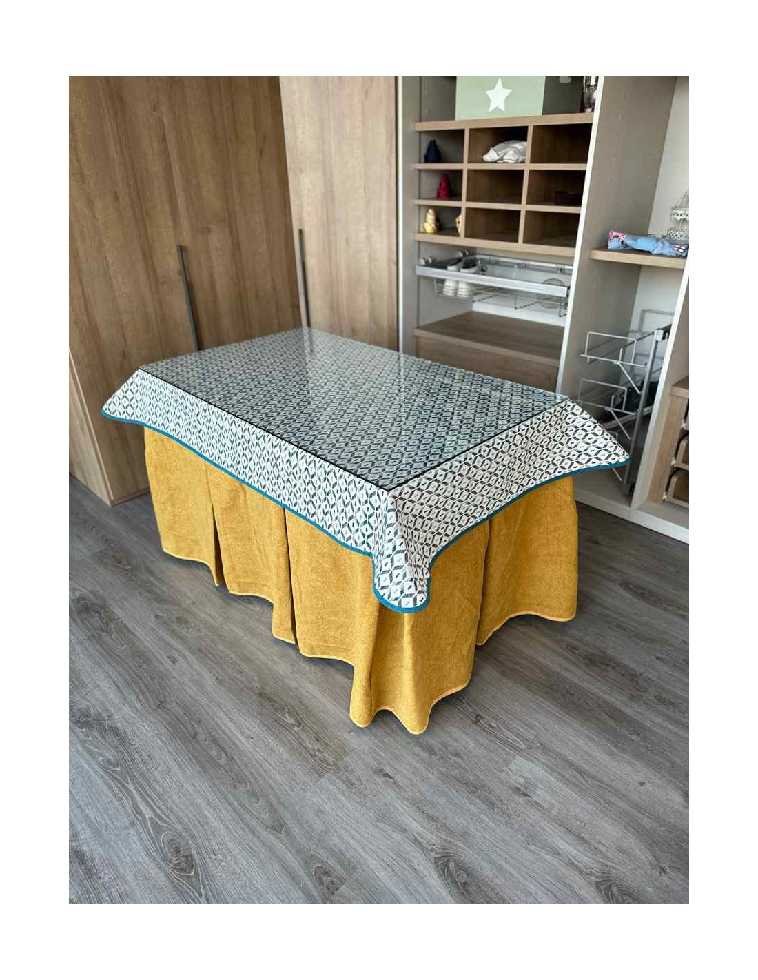 Tapete de diseño para crear ambientes en cada rincón de tu casa. La mesa de camilla es un producto que te permite decorar estancias y darles un ambiente acogedor a tu casa. Además evita las manchas cotidianas al comer ya que cubre la parte alta de la ropa de mesa camilla protegiendola de manchas inoportunas. Muy fácil y cómodo de lavar.