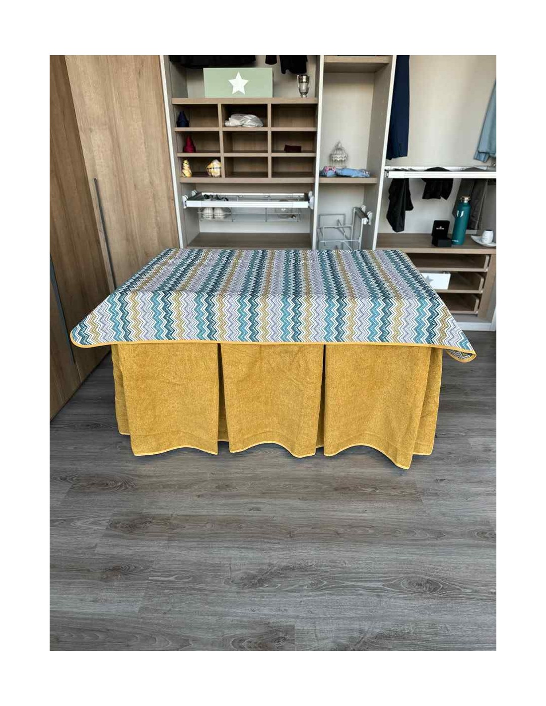 Tapete de diseño para crear ambientes en cada rincón de tu casa. La mesa de camilla es un producto que te permite decorar estancias y darles un ambiente acogedor a tu casa. Además evita las manchas cotidianas al comer ya que cubre la parte alta de la ropa de mesa camilla protegiendola de manchas inoportunas. Muy fácil y cómodo de lavar.