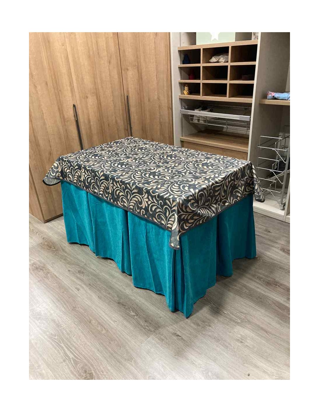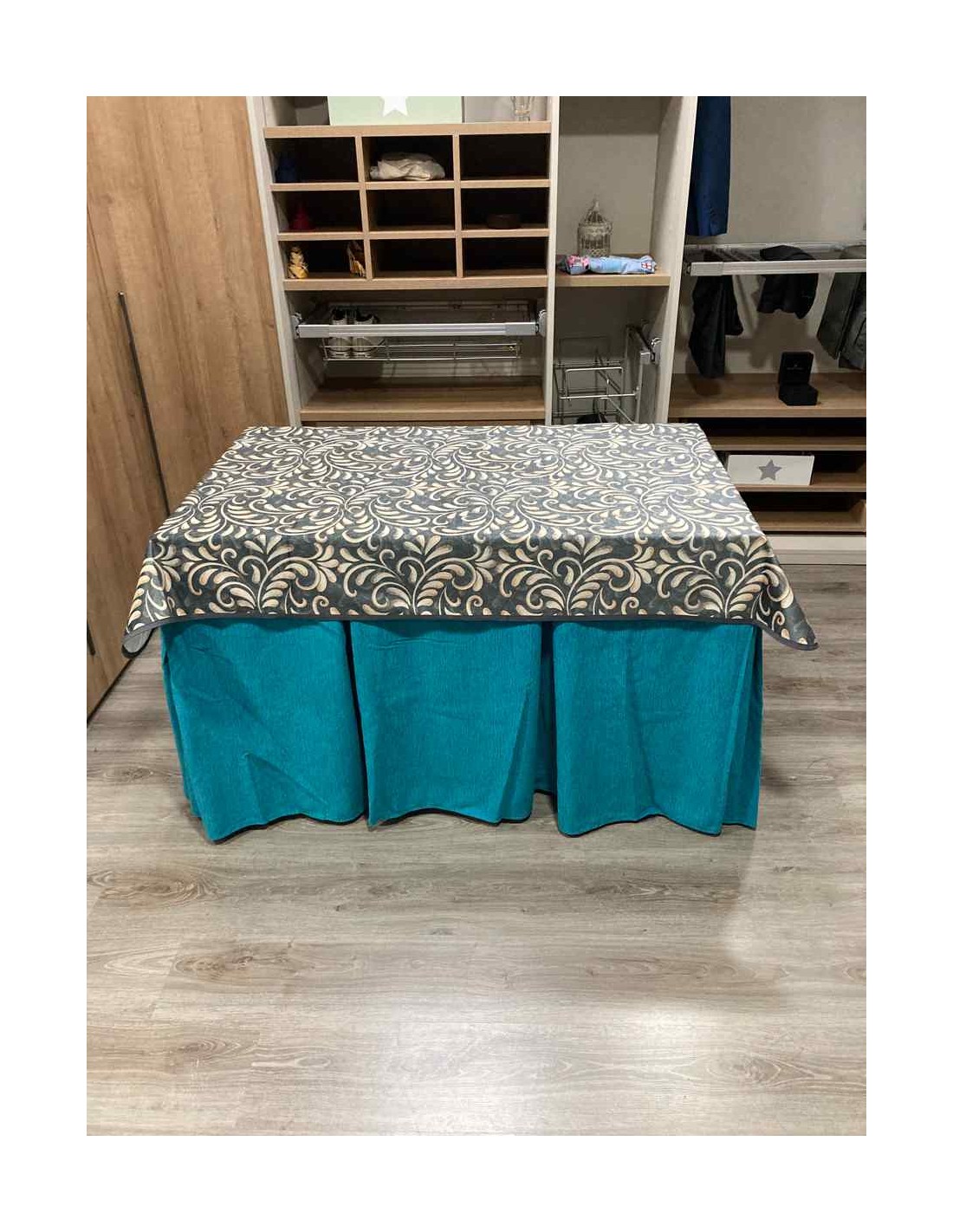 Confeccionada con 8 pliegues para mantener el calor de manera eficiente. Las tablas comunmente llamados pliegues, favorecen la retención de la temperatura impidiendo escapar el calor cuando nos sentamos en la mesa y nos cubrimos con ella. Gracias a nuestro diseño en los fuelles la falda de mesa camilla caerá cubriéndono los laterales e impidiendo que escape el calor.