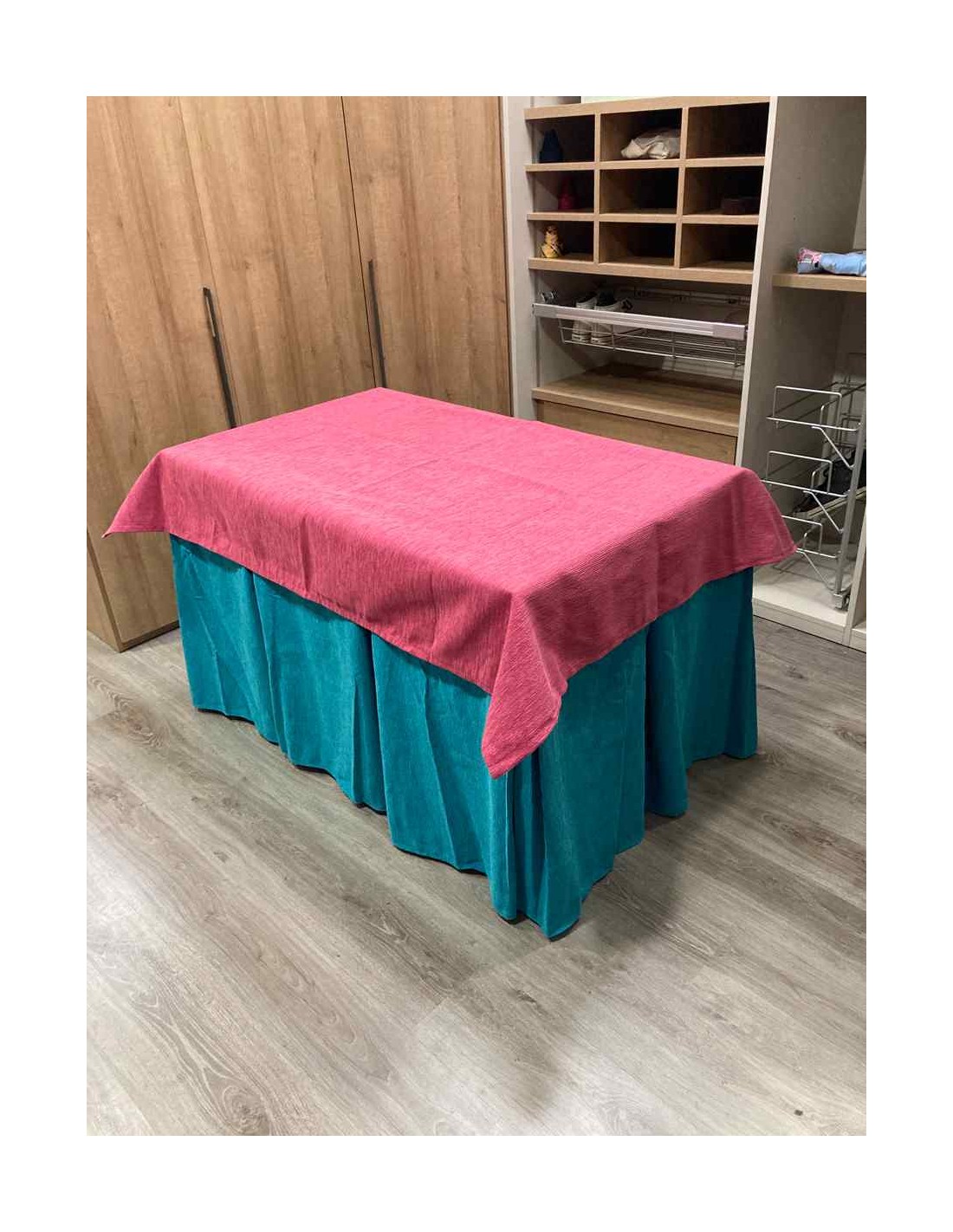 Disfruta la calidez de esta ropa de mesa camilla con tejido chenilla de 10 pliegues con tapete. Tacto suave y agradable, mantiene la temperatura facilitando el ahorro de consumo energético.