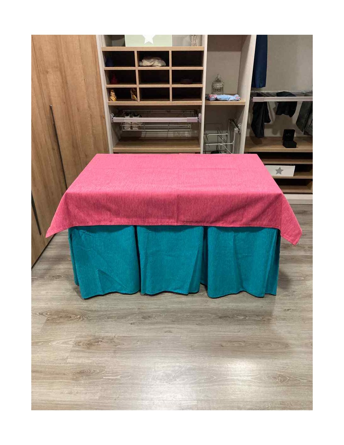 Confeccionada con 8 pliegues para mantener el calor de manera eficiente. Las tablas comunmente llamados pliegues, favorecen la retención de la temperatura impidiendo escapar el calor cuando nos sentamos en la mesa y nos cubrimos con ella. Gracias a nuestro diseño en los fuelles la falda de mesa camilla caerá cubriéndono los laterales e impidiendo que escape el calor.