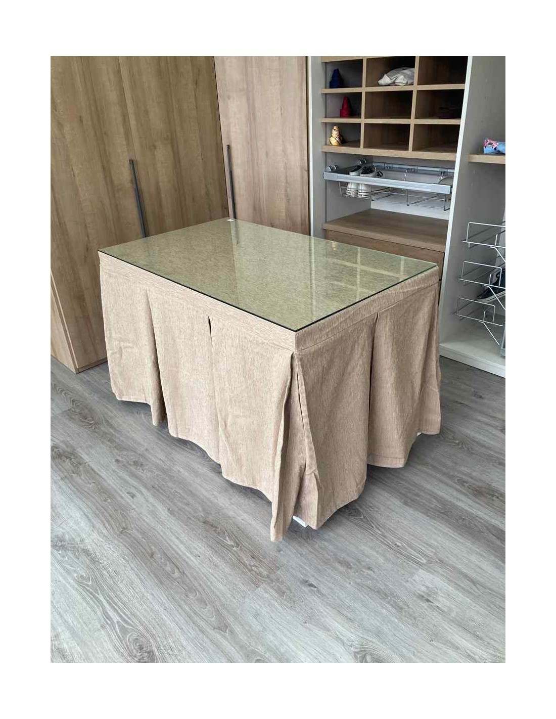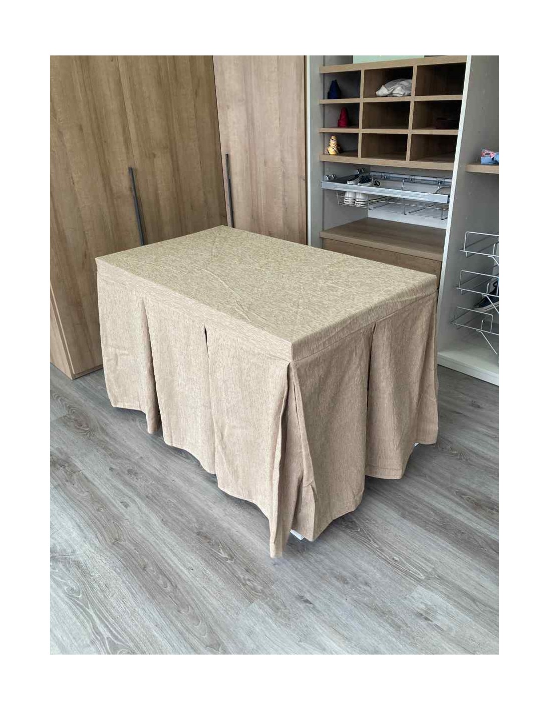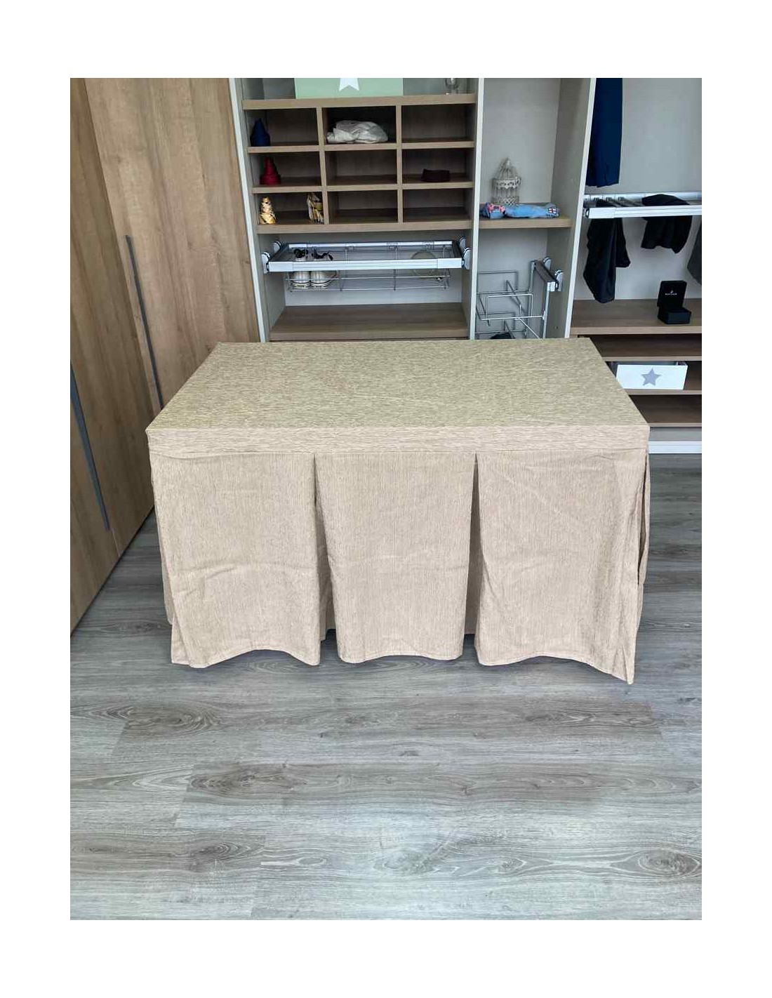 Confeccionada con 10 pliegues para mantener el calor de manera eficiente. Las tablas comunmente llamados pliegues, favorecen la retención de la temperatura impidiendo escapar el calor cuando nos sentamos en la mesa y nos cubrimos con ella. Gracias a nuestro diseño en los fuelles la falda de mesa camilla caerá cubriéndono los laterales e impidiendo que escape el calor.