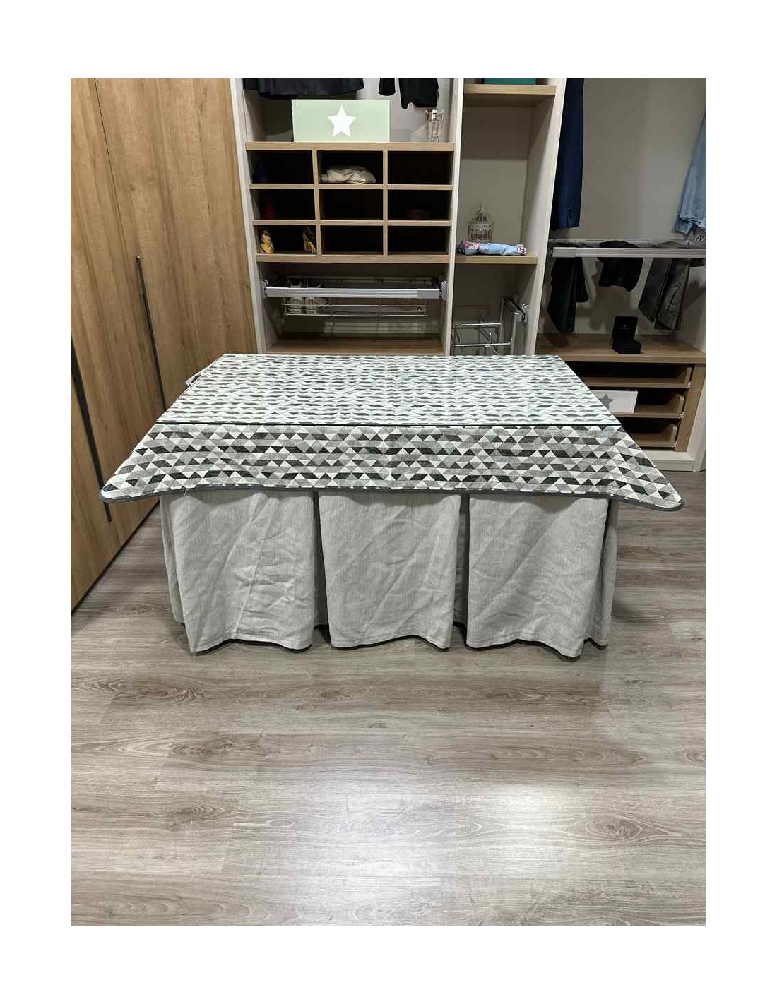 Confeccionada con 8 pliegues para mantener el calor de manera eficiente. Las tablas comunmente llamados pliegues, favorecen la retención de la temperatura impidiendo escapar el calor cuando nos sentamos en la mesa y nos cubrimos con ella. Gracias a nuestro diseño en los fuelles la falda de mesa camilla caerá cubriéndono los laterales e impidiendo que escape el calor.