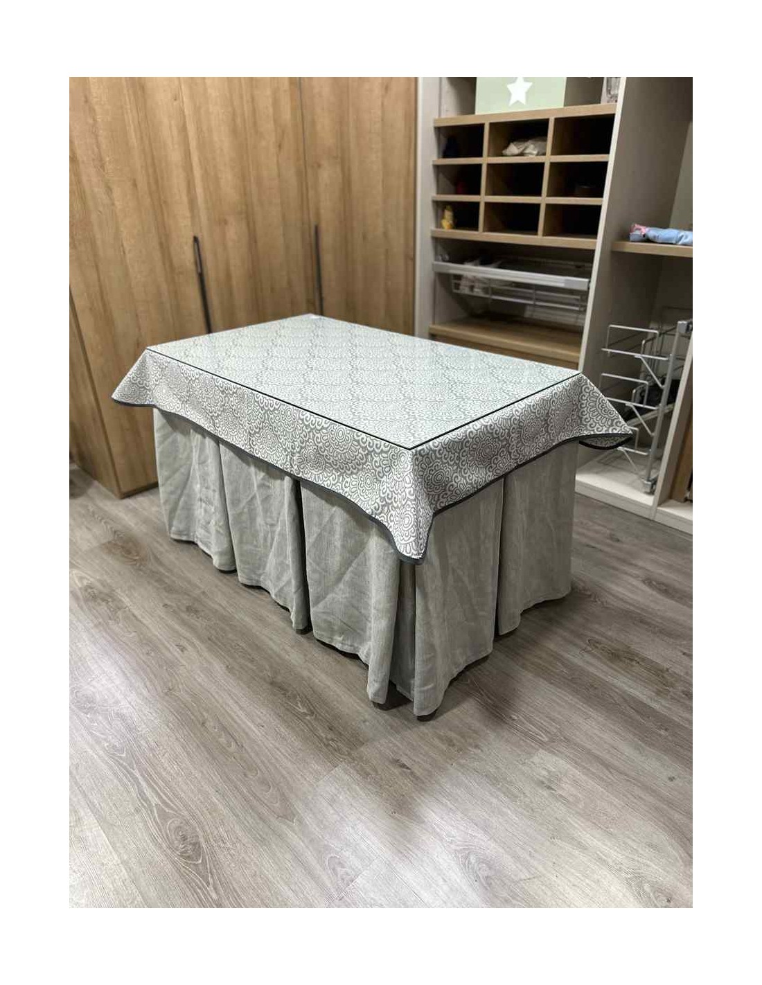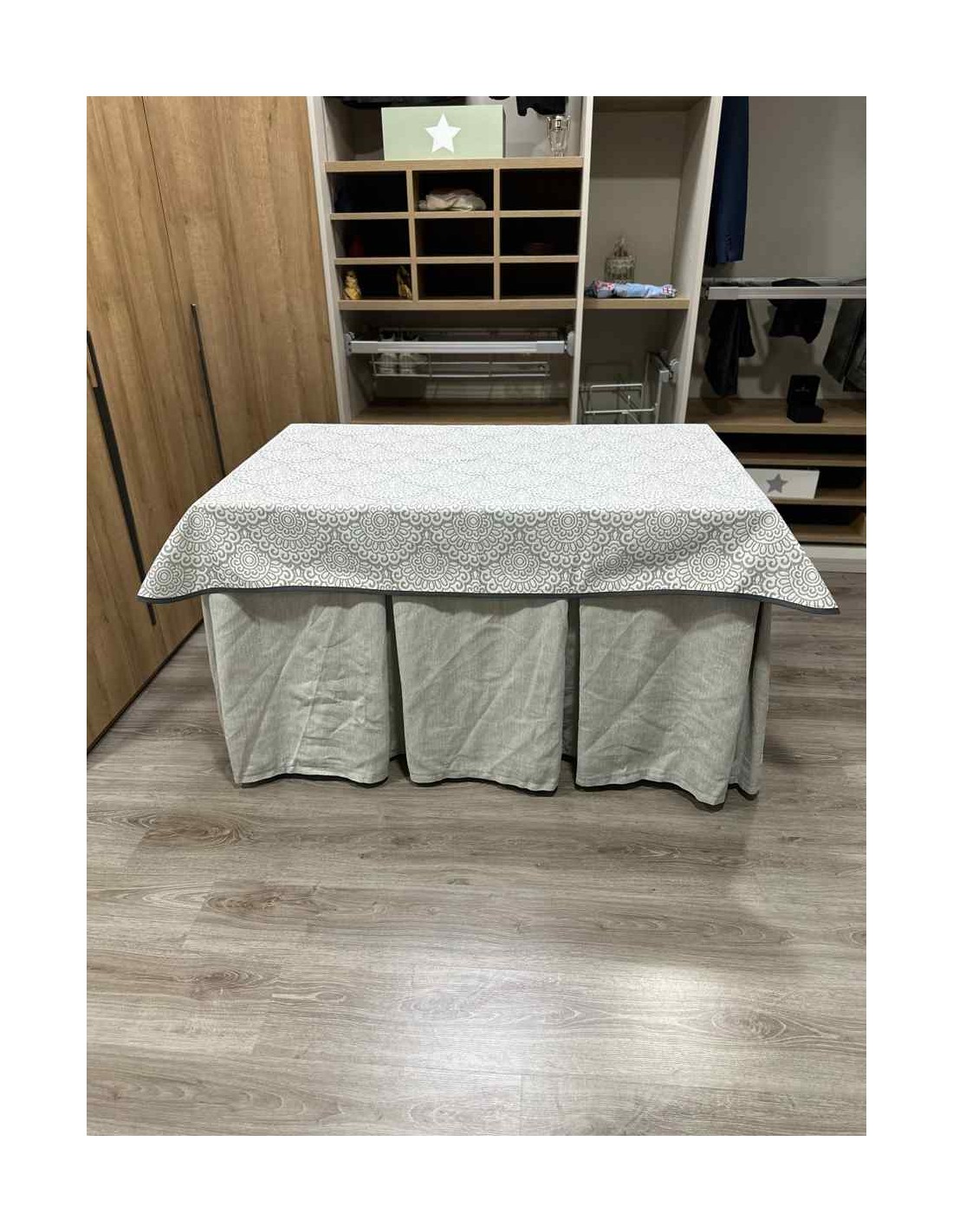 Confeccionada con 8 pliegues para mantener el calor de manera eficiente. Las tablas comunmente llamados pliegues, favorecen la retención de la temperatura impidiendo escapar el calor cuando nos sentamos en la mesa y nos cubrimos con ella. Gracias a nuestro diseño en los fuelles la falda de mesa camilla caerá cubriéndono los laterales e impidiendo que escape el calor.