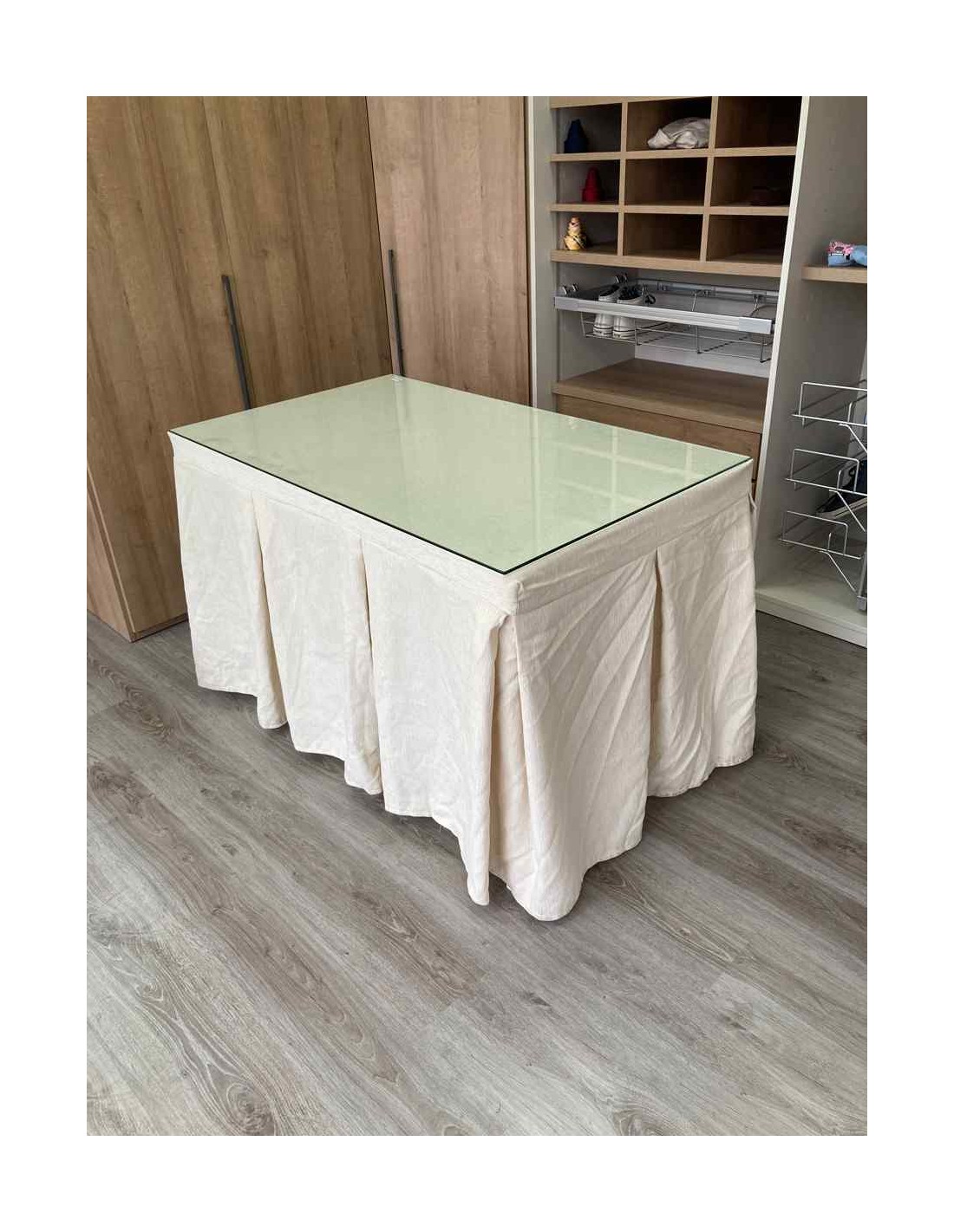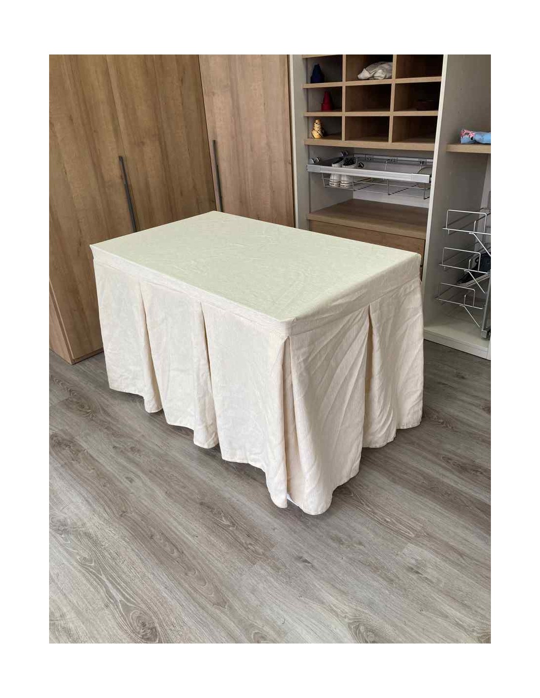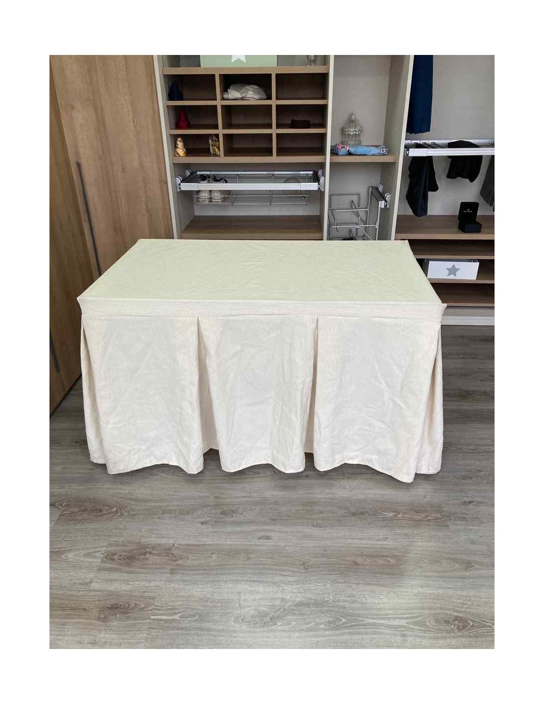 Confeccionada con 10 pliegues para mantener el calor de manera eficiente. Las tablas comunmente llamados pliegues, favorecen la retención de la temperatura impidiendo escapar el calor cuando nos sentamos en la mesa y nos cubrimos con ella. Gracias a nuestro diseño en los fuelles la falda de mesa camilla caerá cubriéndono los laterales e impidiendo que escape el calor.