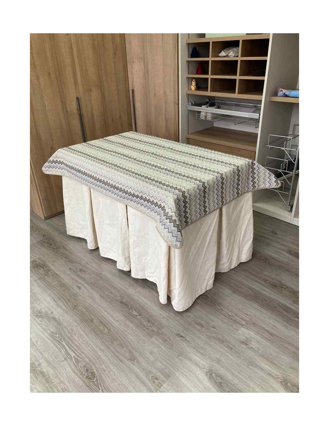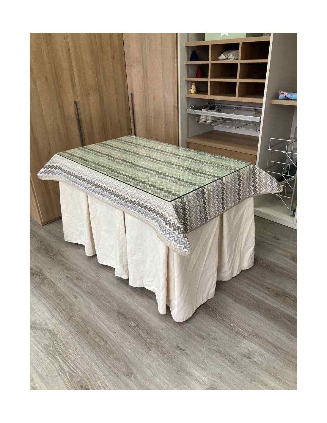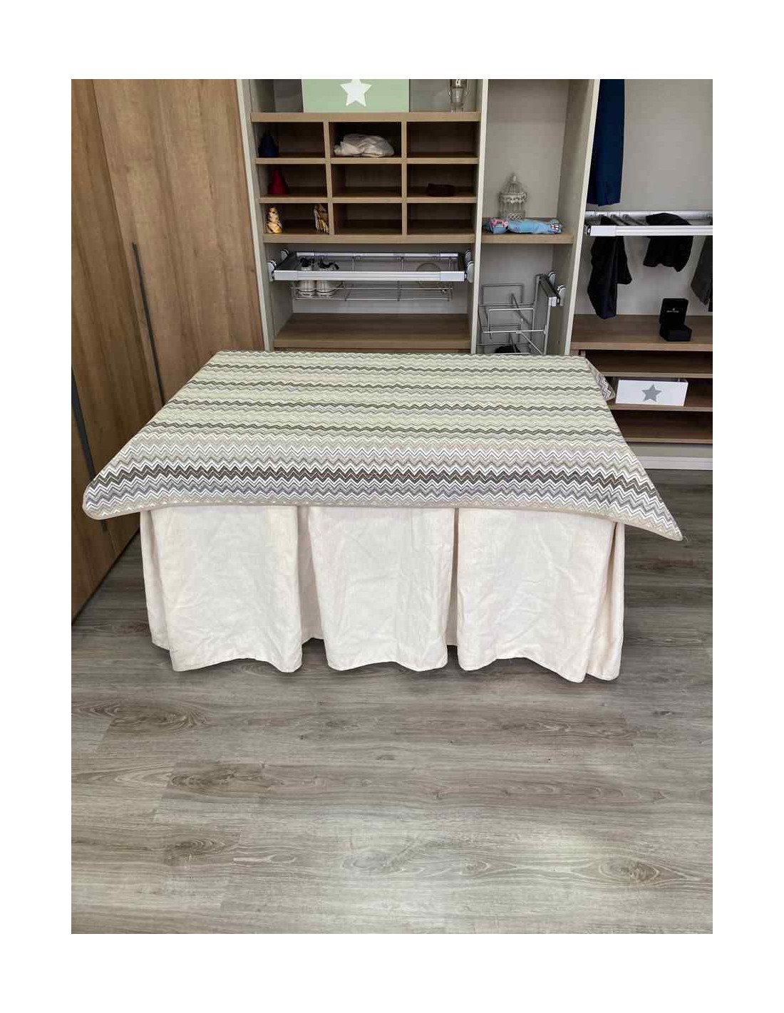 Confeccionada con 8 pliegues para mantener el calor de manera eficiente. Las tablas comunmente llamados pliegues, favorecen la retención de la temperatura impidiendo escapar el calor cuando nos sentamos en la mesa y nos cubrimos con ella. Gracias a nuestro diseño en los fuelles la falda de mesa camilla caerá cubriéndono los laterales e impidiendo que escape el calor.