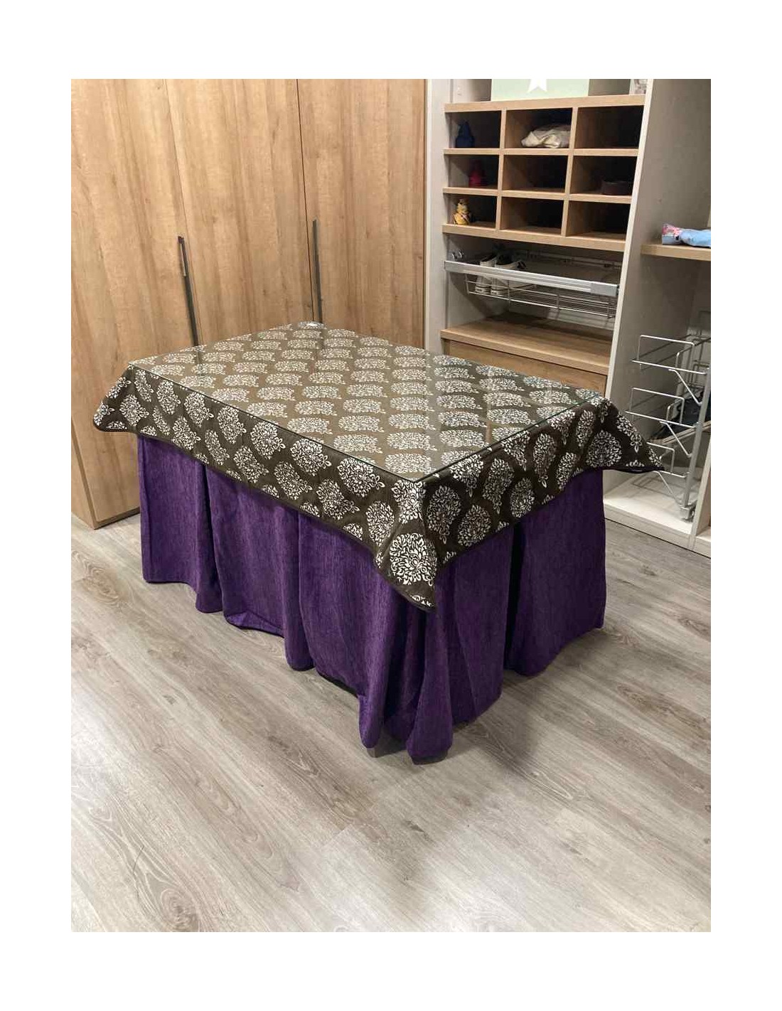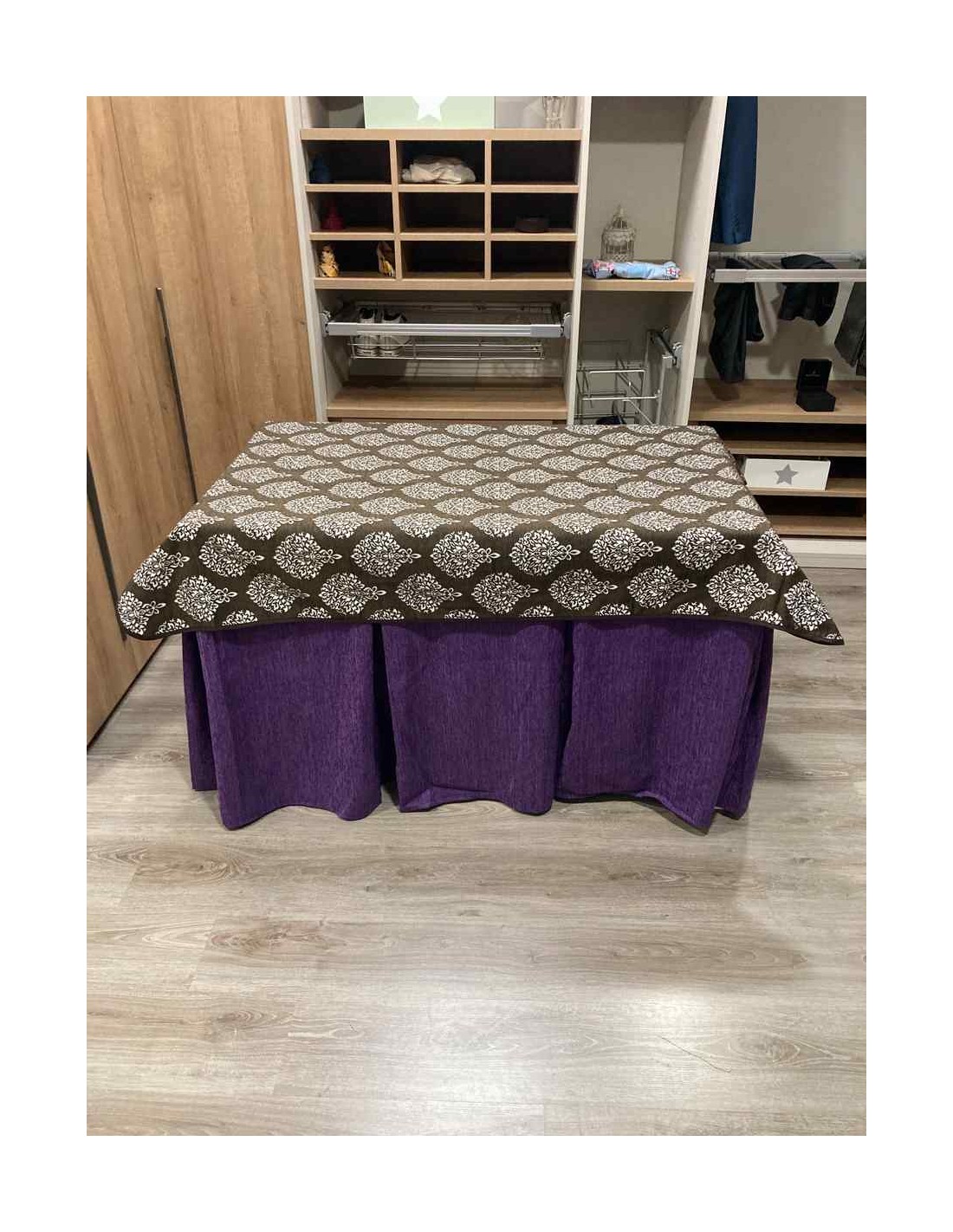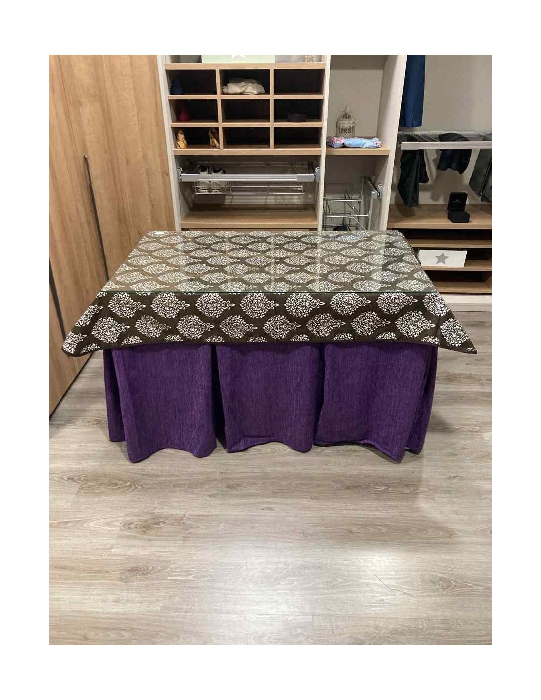 Confeccionada con 8 pliegues para mantener el calor de manera eficiente. Las tablas comunmente llamados pliegues, favorecen la retención de la temperatura impidiendo escapar el calor cuando nos sentamos en la mesa y nos cubrimos con ella. Gracias a nuestro diseño en los fuelles la falda de mesa camilla caerá cubriéndono los laterales e impidiendo que escape el calor.