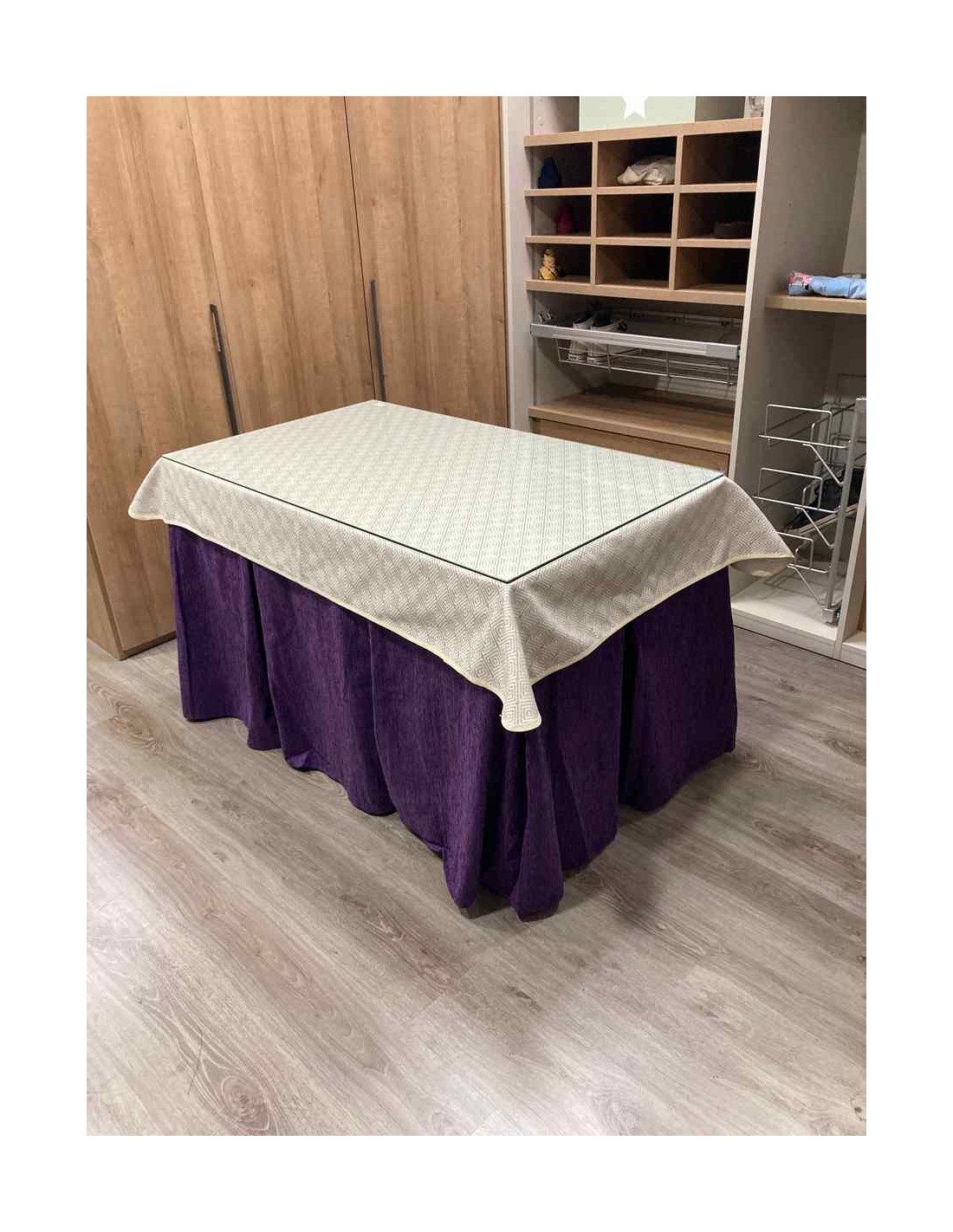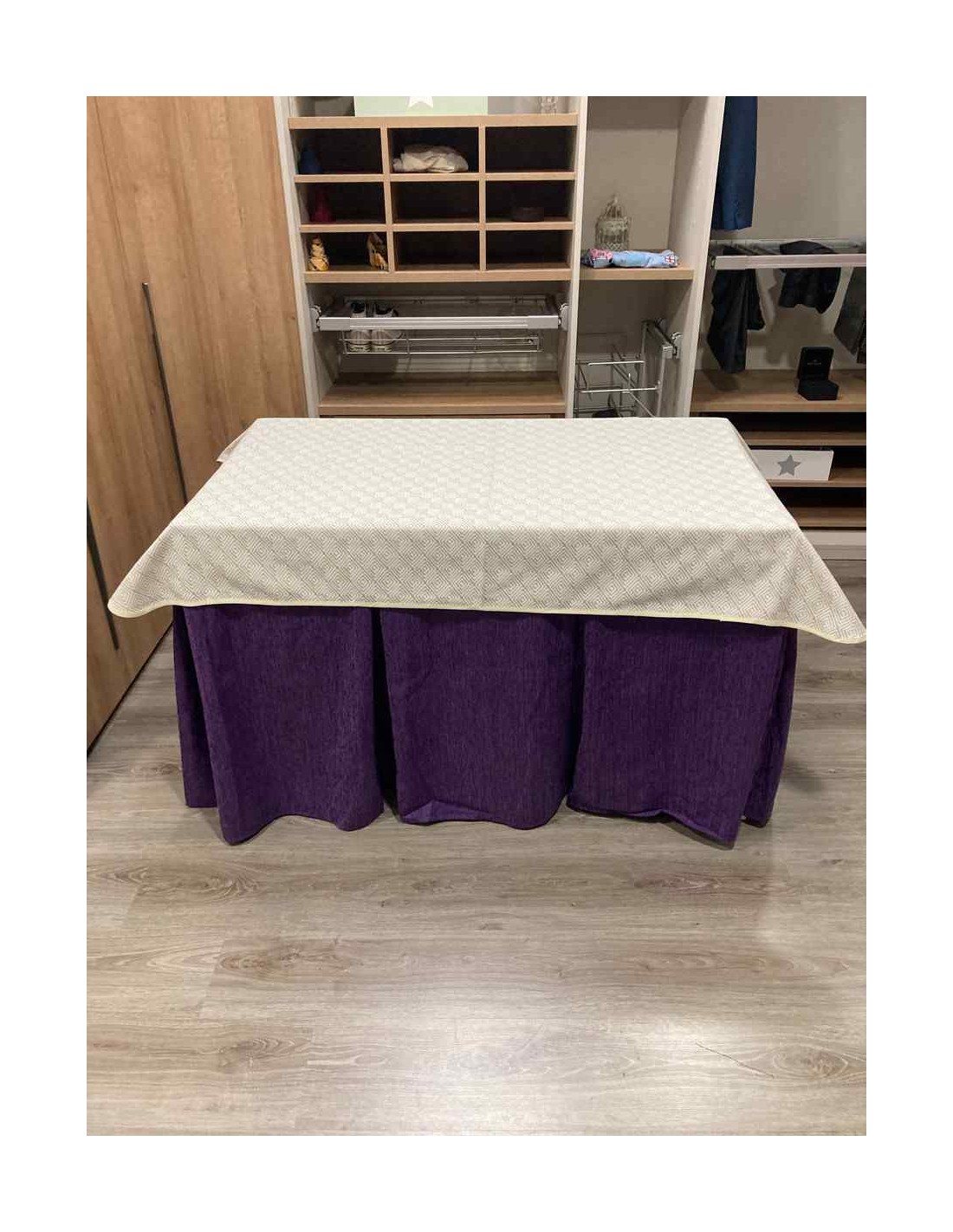 Confeccionada con 8 pliegues para mantener el calor de manera eficiente. Las tablas comunmente llamados pliegues, favorecen la retención de la temperatura impidiendo escapar el calor cuando nos sentamos en la mesa y nos cubrimos con ella. Gracias a nuestro diseño en los fuelles la falda de mesa camilla caerá cubriéndono los laterales e impidiendo que escape el calor.