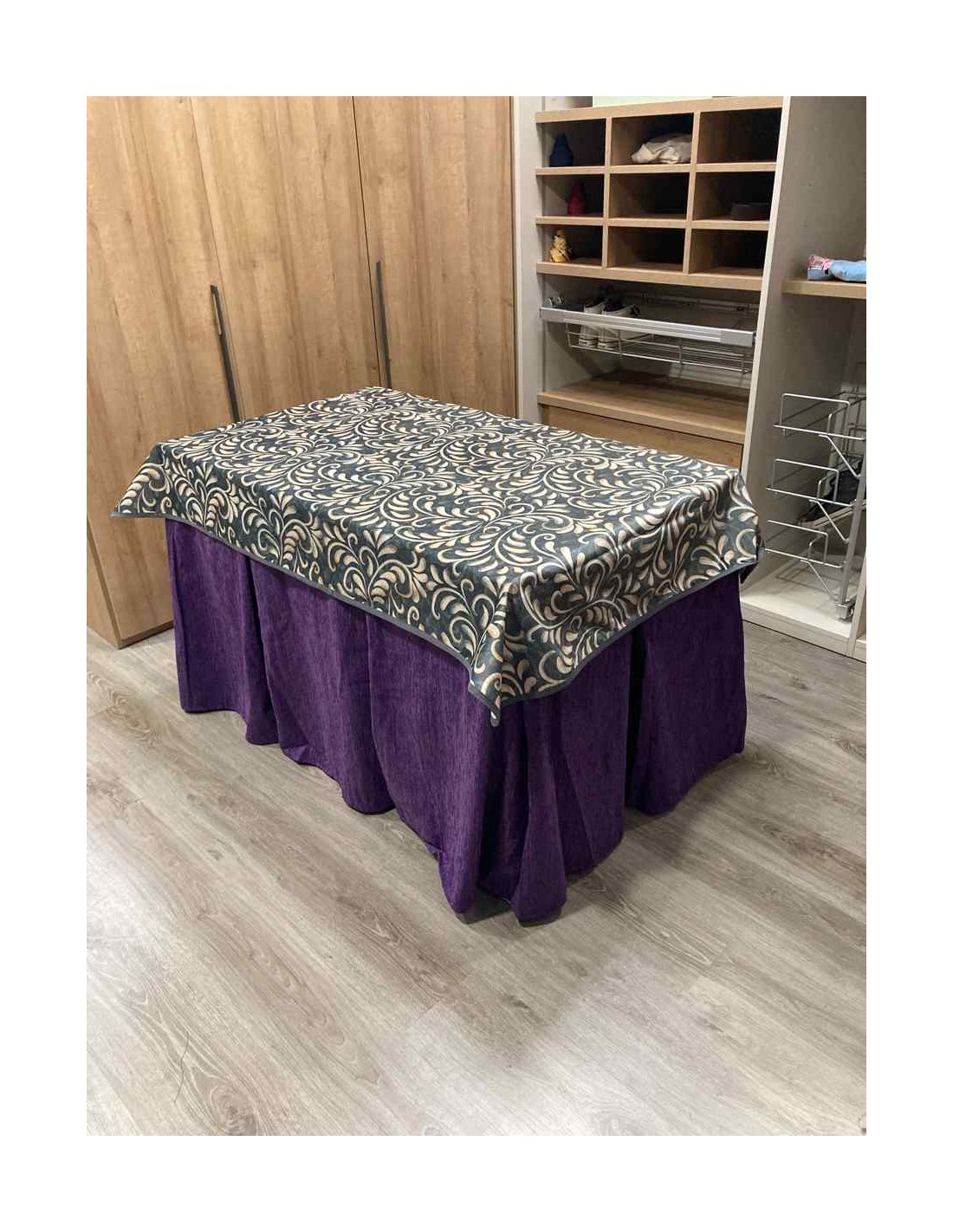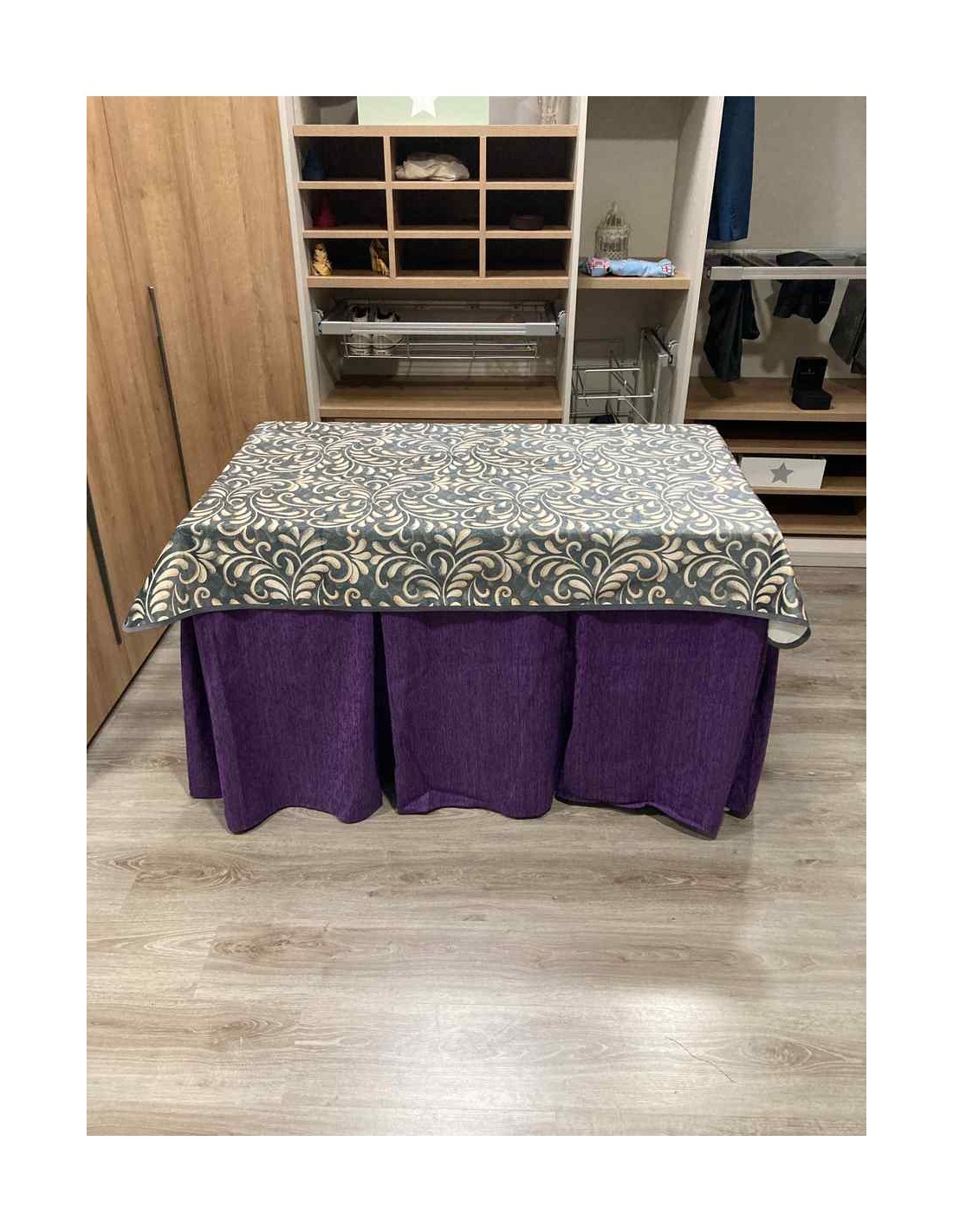 Confeccionada con 8 pliegues para mantener el calor de manera eficiente. Las tablas comunmente llamados pliegues, favorecen la retención de la temperatura impidiendo escapar el calor cuando nos sentamos en la mesa y nos cubrimos con ella. Gracias a nuestro diseño en los fuelles la falda de mesa camilla caerá cubriéndono los laterales e impidiendo que escape el calor.
