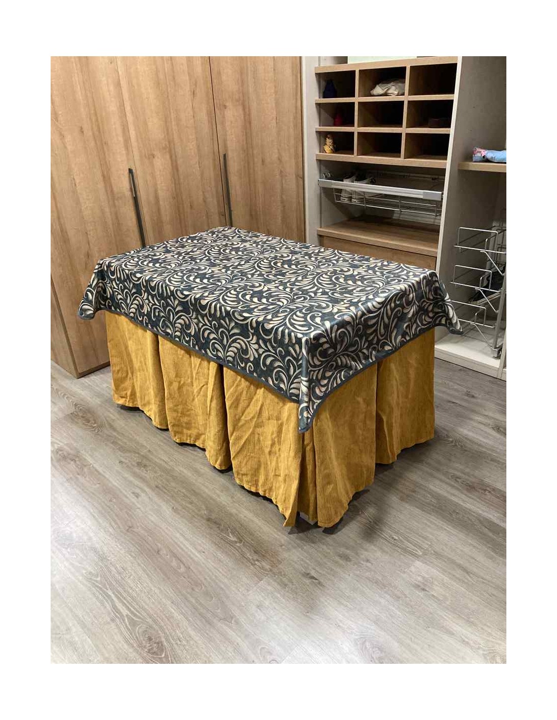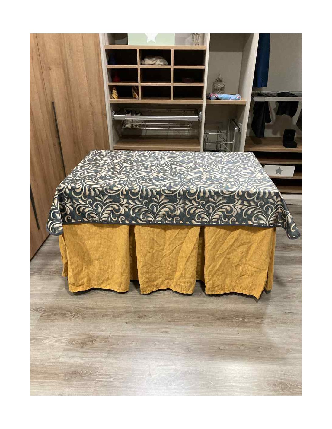Confeccionada con 8 pliegues para mantener el calor de manera eficiente. Las tablas comunmente llamados pliegues, favorecen la retención de la temperatura impidiendo escapar el calor cuando nos sentamos en la mesa y nos cubrimos con ella. Gracias a nuestro diseño en los fuelles la falda de mesa camilla caerá cubriéndono los laterales e impidiendo que escape el calor.