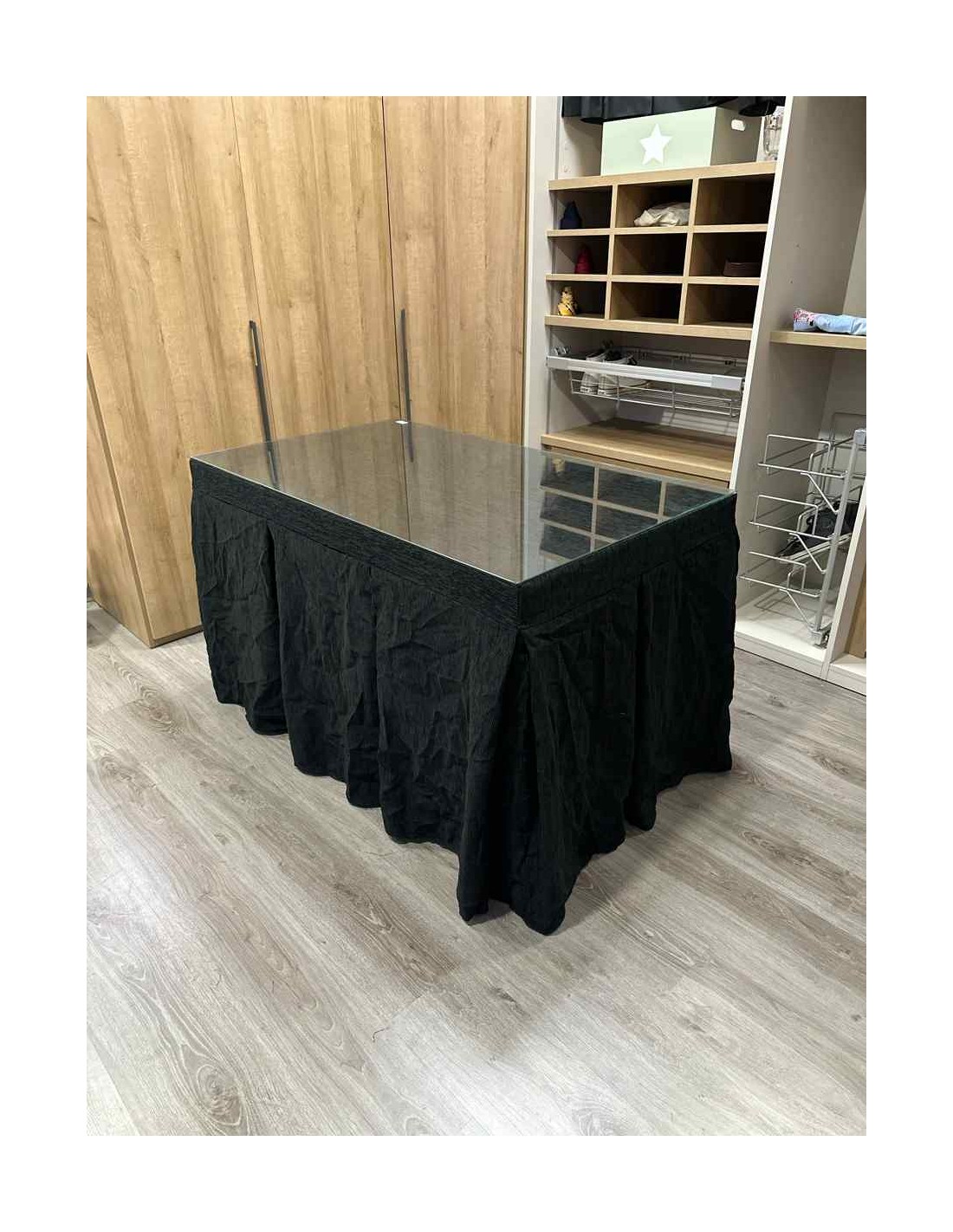 Confeccionada con 10 pliegues para mantener el calor de manera eficiente. Las tablas comunmente llamados pliegues, favorecen la retención de la temperatura impidiendo escapar el calor cuando nos sentamos en la mesa y nos cubrimos con ella. Gracias a nuestro diseño en los fuelles la falda de mesa camilla caerá cubriéndono los laterales e impidiendo que escape el calor.