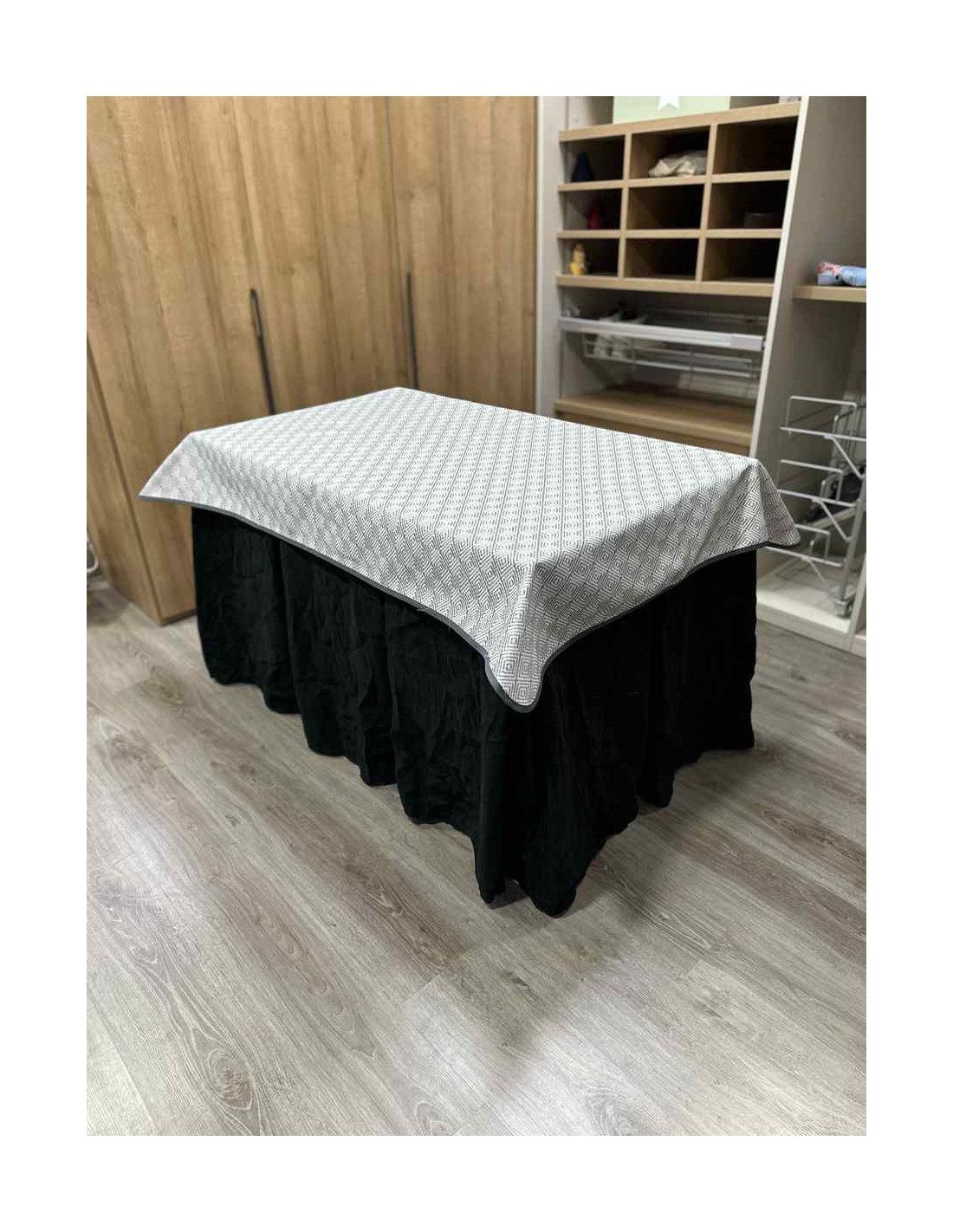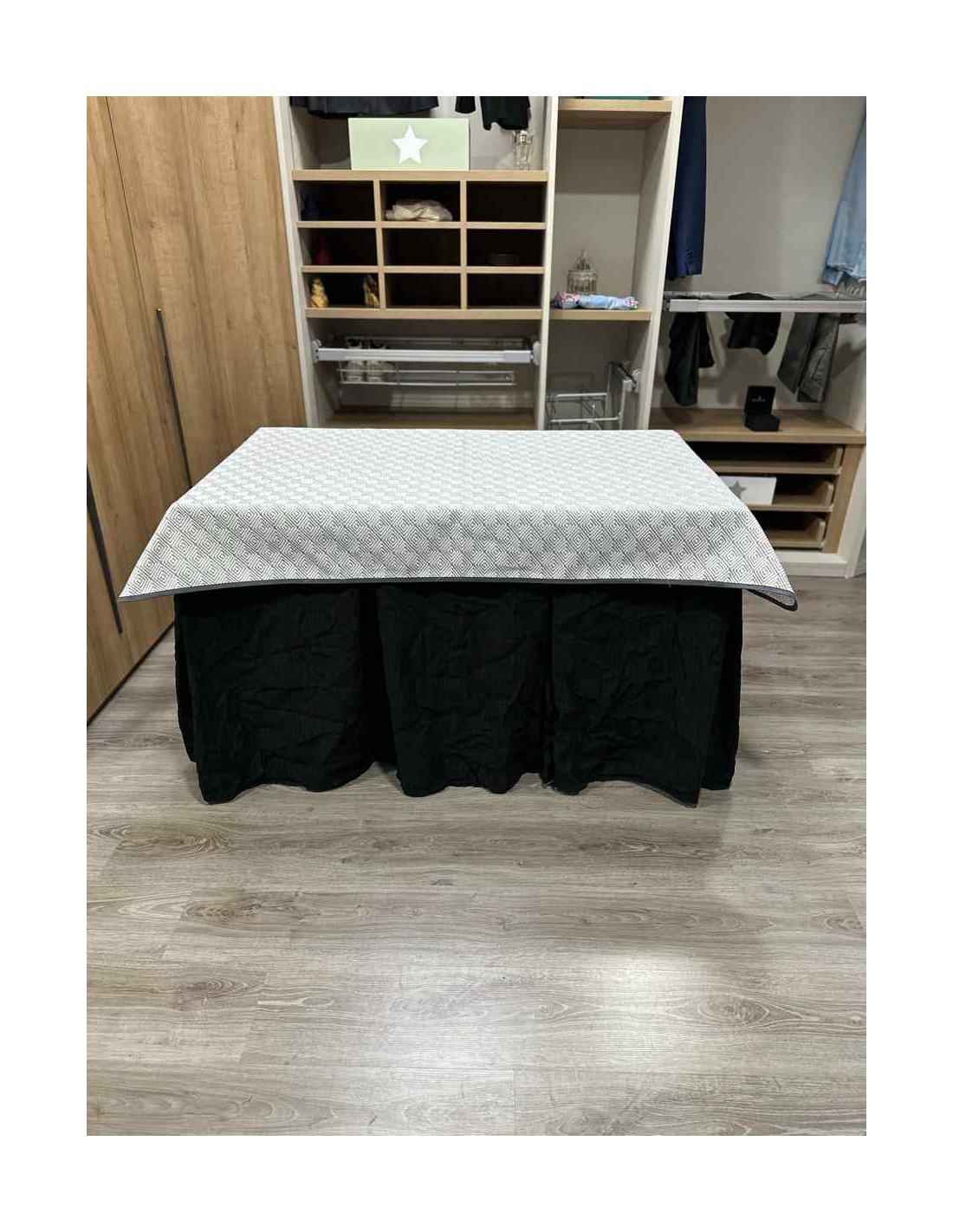 Confeccionada con 8 pliegues para mantener el calor de manera eficiente. Las tablas comunmente llamados pliegues, favorecen la retención de la temperatura impidiendo escapar el calor cuando nos sentamos en la mesa y nos cubrimos con ella. Gracias a nuestro diseño en los fuelles la falda de mesa camilla caerá cubriéndono los laterales e impidiendo que escape el calor.