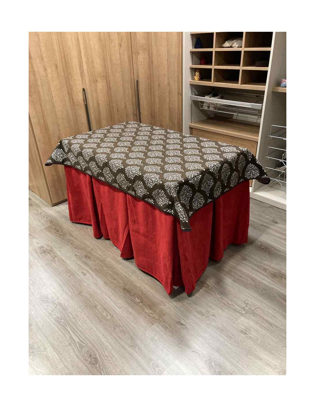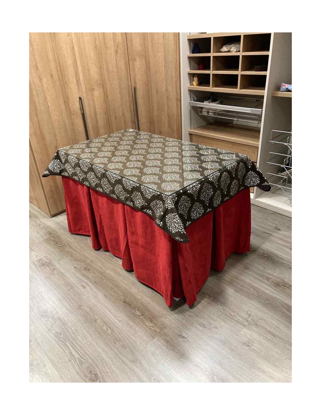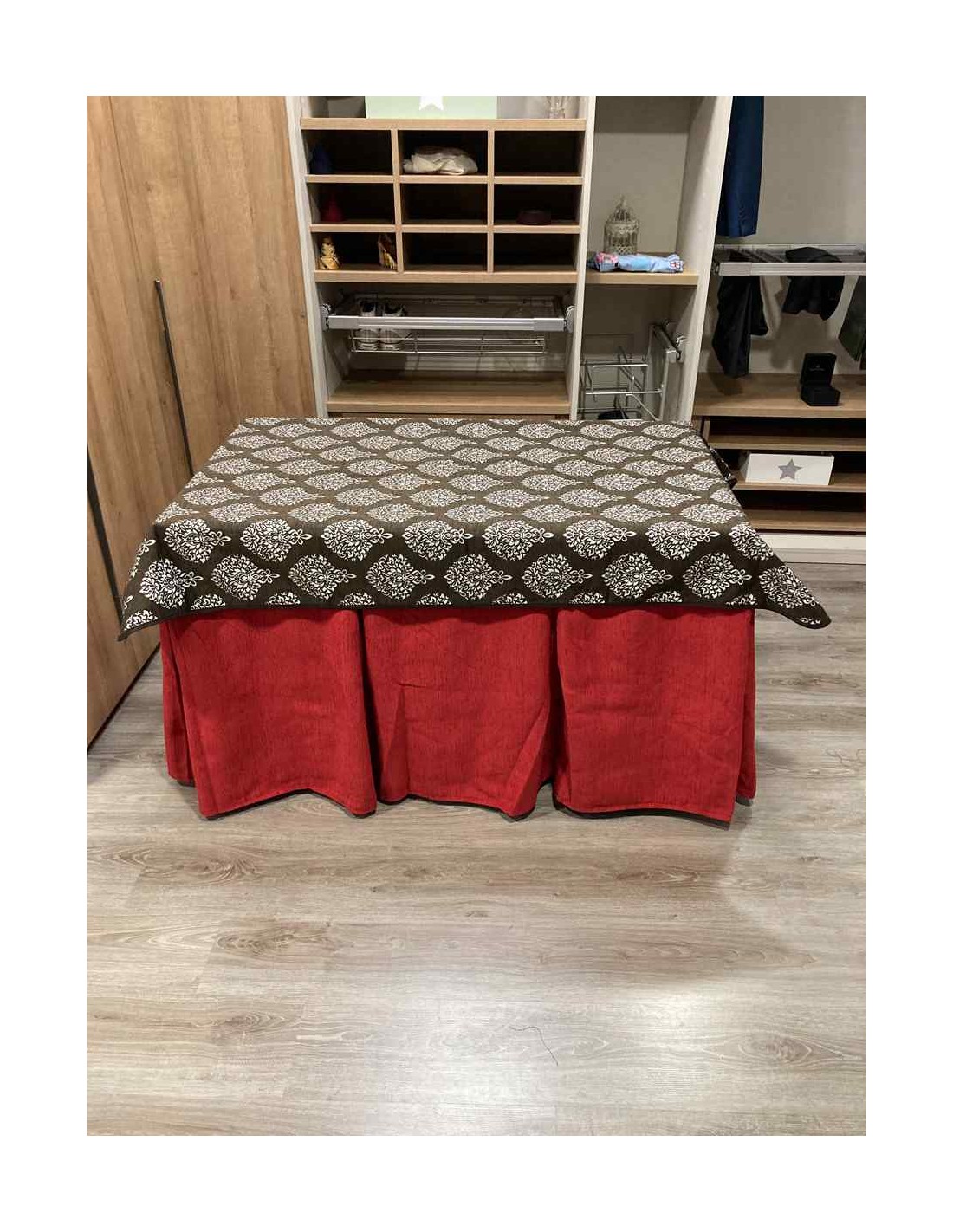 Confeccionada con 8 pliegues para mantener el calor de manera eficiente. Las tablas comunmente llamados pliegues, favorecen la retención de la temperatura impidiendo escapar el calor cuando nos sentamos en la mesa y nos cubrimos con ella. Gracias a nuestro diseño en los fuelles la falda de mesa camilla caerá cubriéndono los laterales e impidiendo que escape el calor.