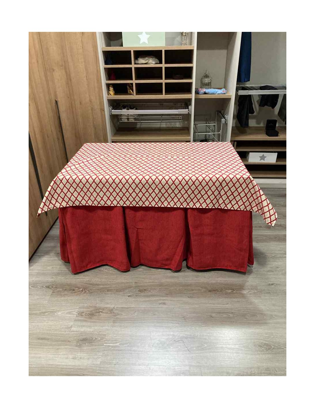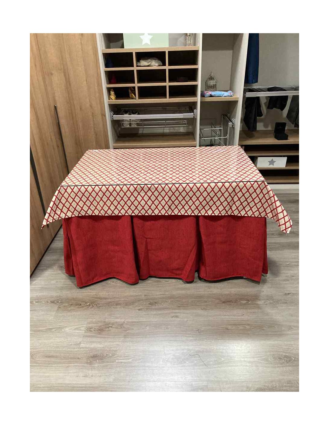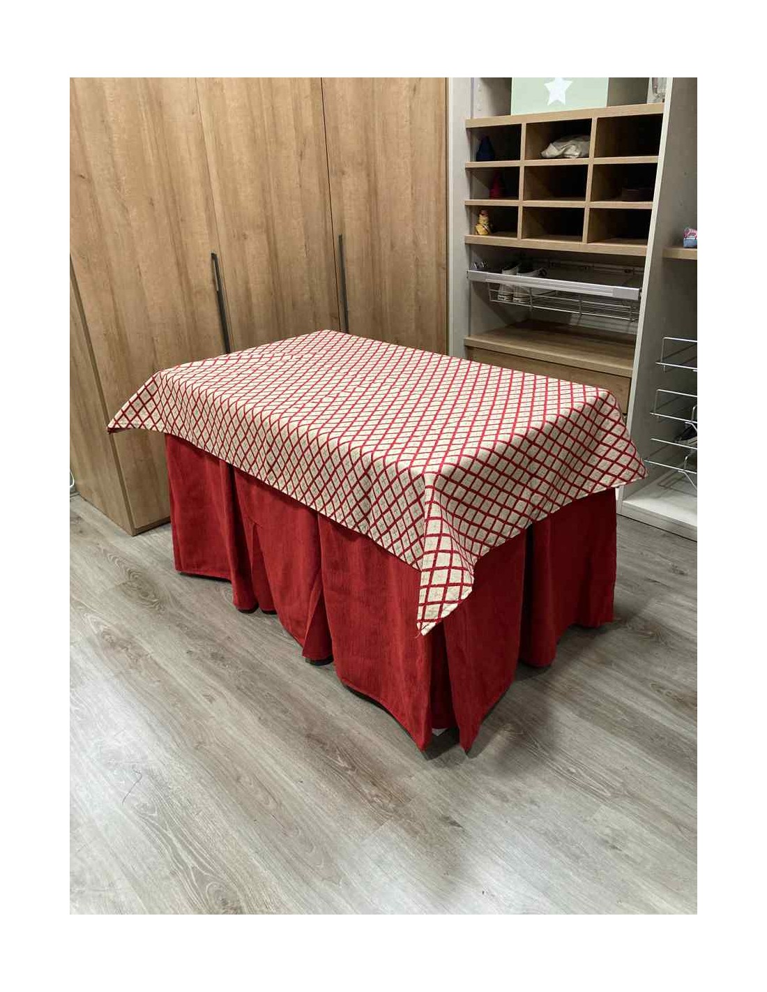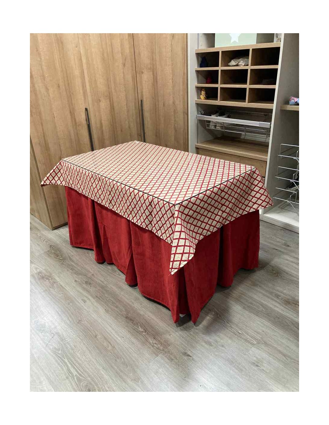 Confeccionada con 8 pliegues para mantener el calor de manera eficiente. Las tablas comunmente llamados pliegues, favorecen la retención de la temperatura impidiendo escapar el calor cuando nos sentamos en la mesa y nos cubrimos con ella. Gracias a nuestro diseño en los fuelles la falda de mesa camilla caerá cubriéndono los laterales e impidiendo que escape el calor.