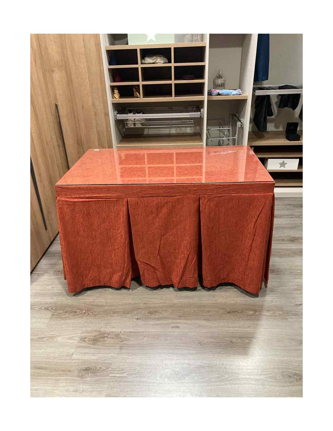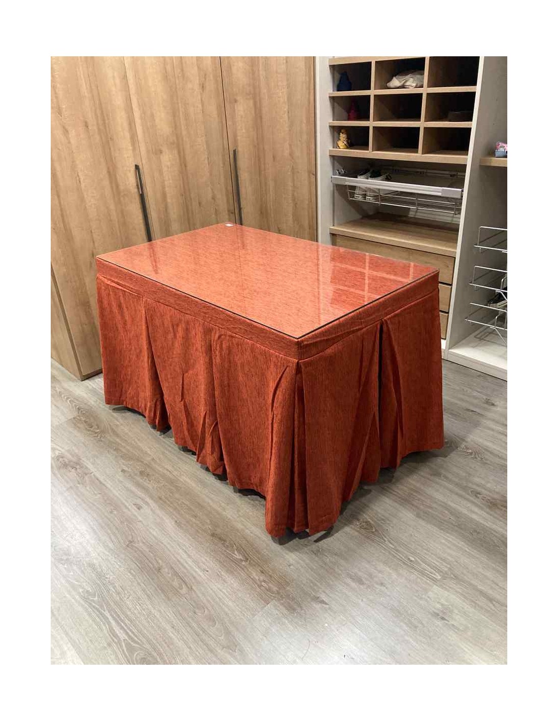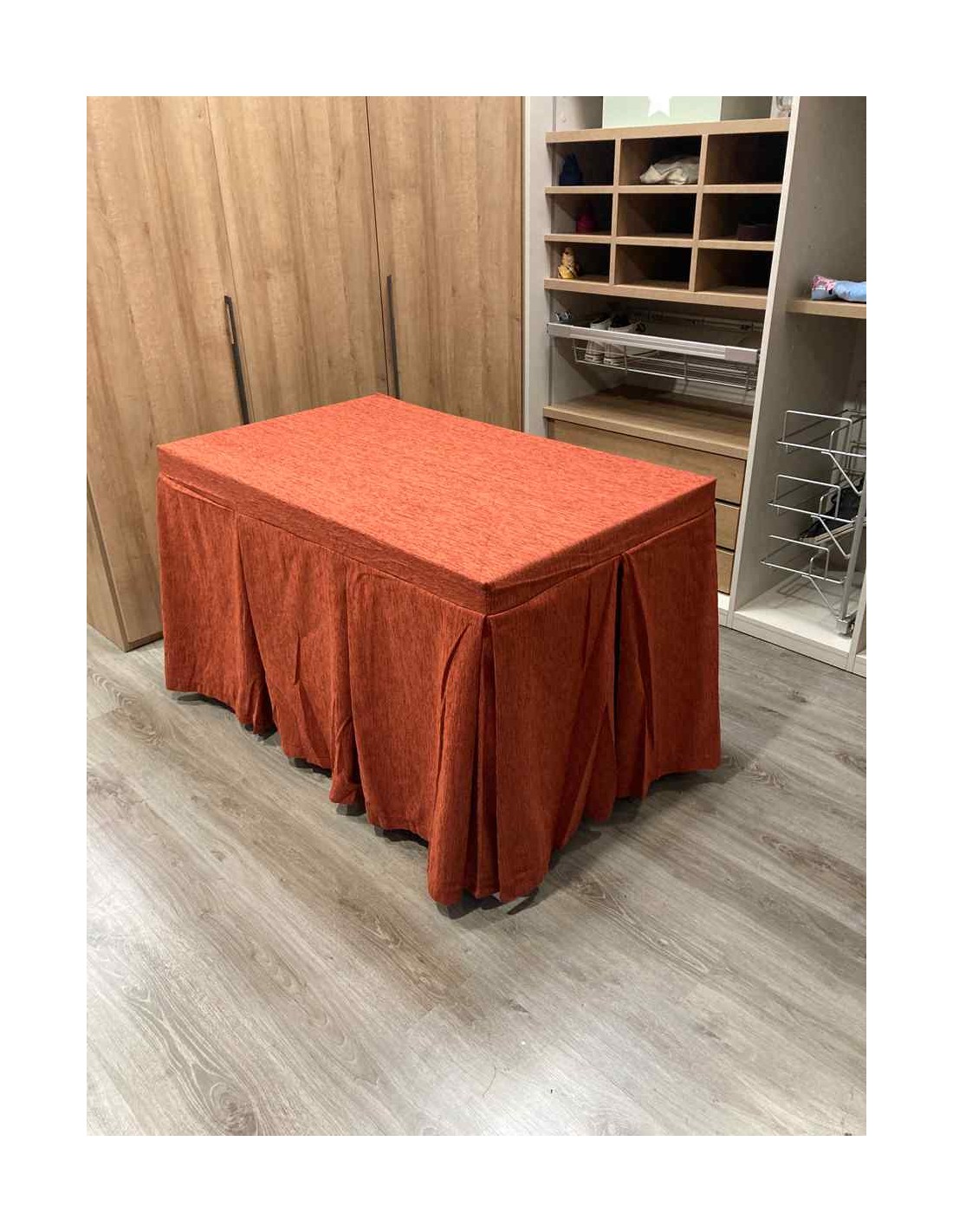 Confeccionada con 10 pliegues para mantener el calor de manera eficiente. Las tablas comunmente llamados pliegues, favorecen la retención de la temperatura impidiendo escapar el calor cuando nos sentamos en la mesa y nos cubrimos con ella. Gracias a nuestro diseño en los fuelles la falda de mesa camilla caerá cubriéndono los laterales e impidiendo que escape el calor.