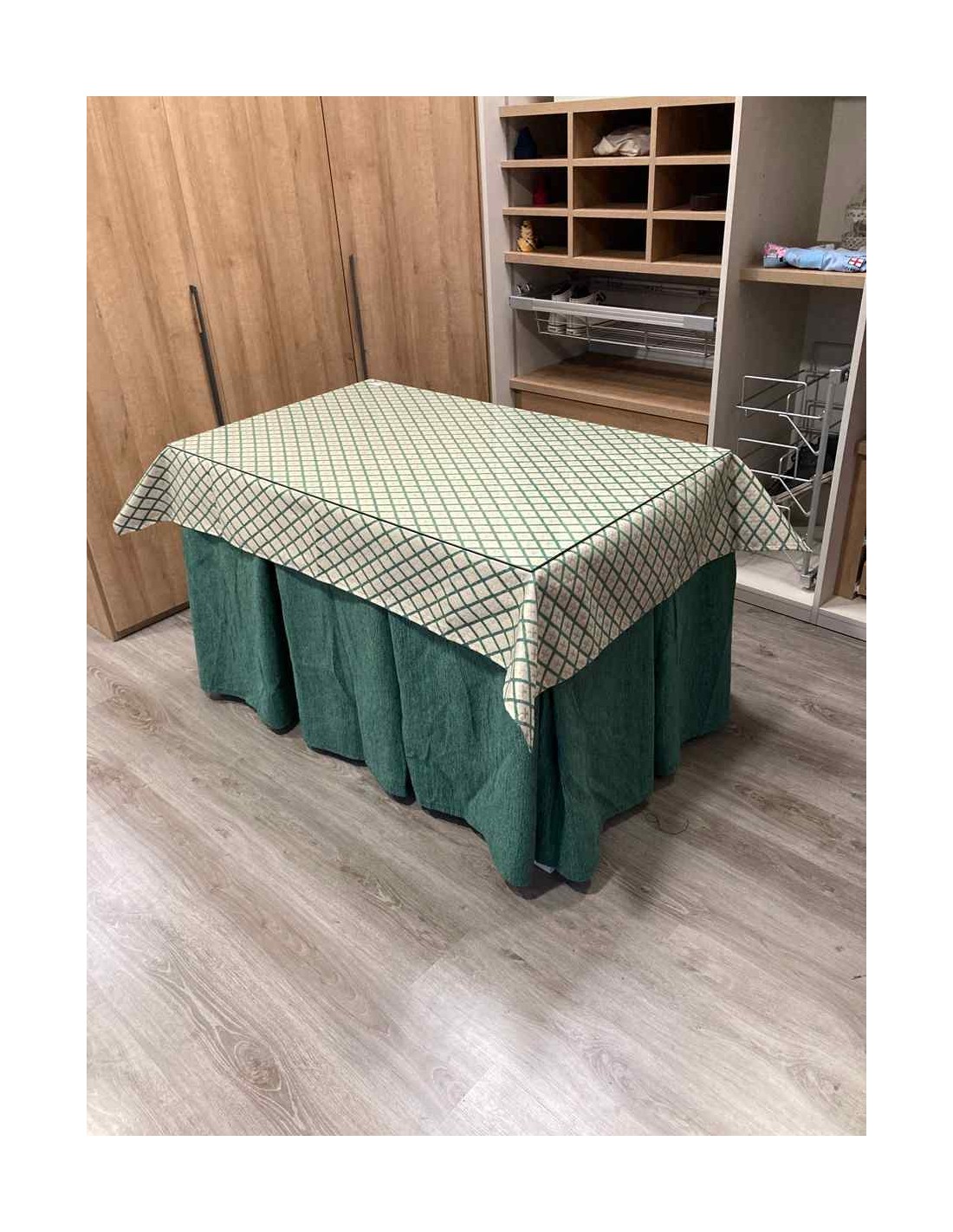 Confeccionada con 8 pliegues para mantener el calor de manera eficiente. Las tablas comunmente llamados pliegues, favorecen la retención de la temperatura impidiendo escapar el calor cuando nos sentamos en la mesa y nos cubrimos con ella. Gracias a nuestro diseño en los fuelles la falda de mesa camilla caerá cubriéndono los laterales e impidiendo que escape el calor.