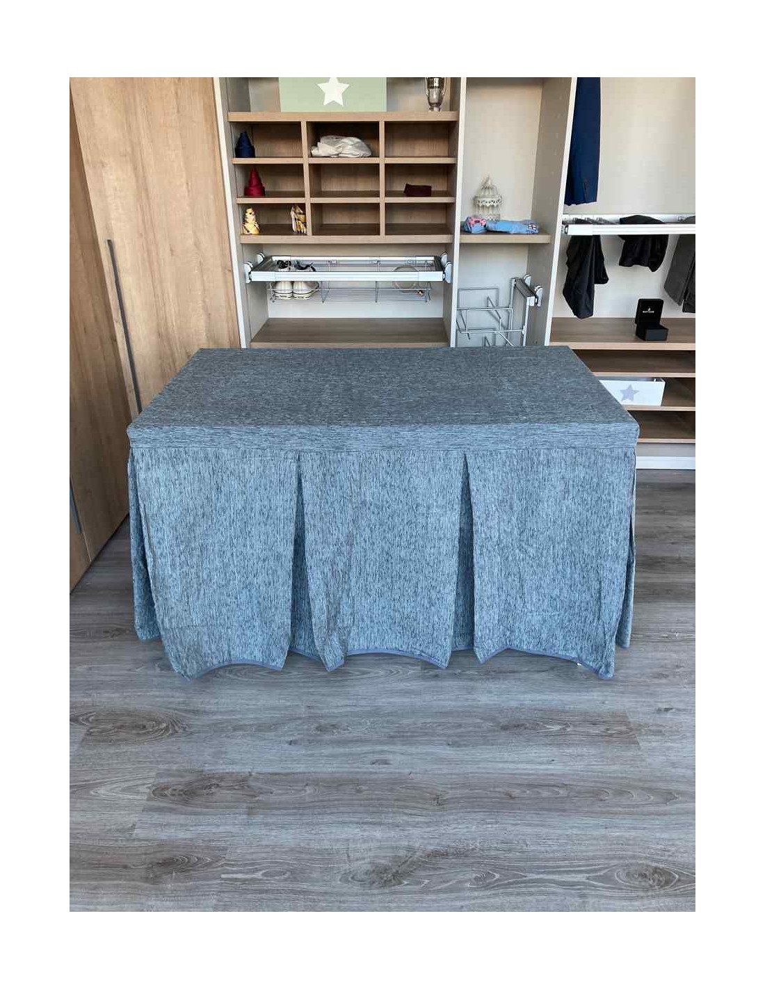 Confeccionada con 8 pliegues para mantener el calor de manera eficiente. Las tablas comunmente llamados pliegues, favorecen la retención de la temperatura impidiendo escapar el calor cuando nos sentamos en la mesa y nos cubrimos con ella. Gracias a nuestro diseño en los fuelles la falda de mesa camilla caerá cubriéndono los laterales e impidiendo que escape el calor.