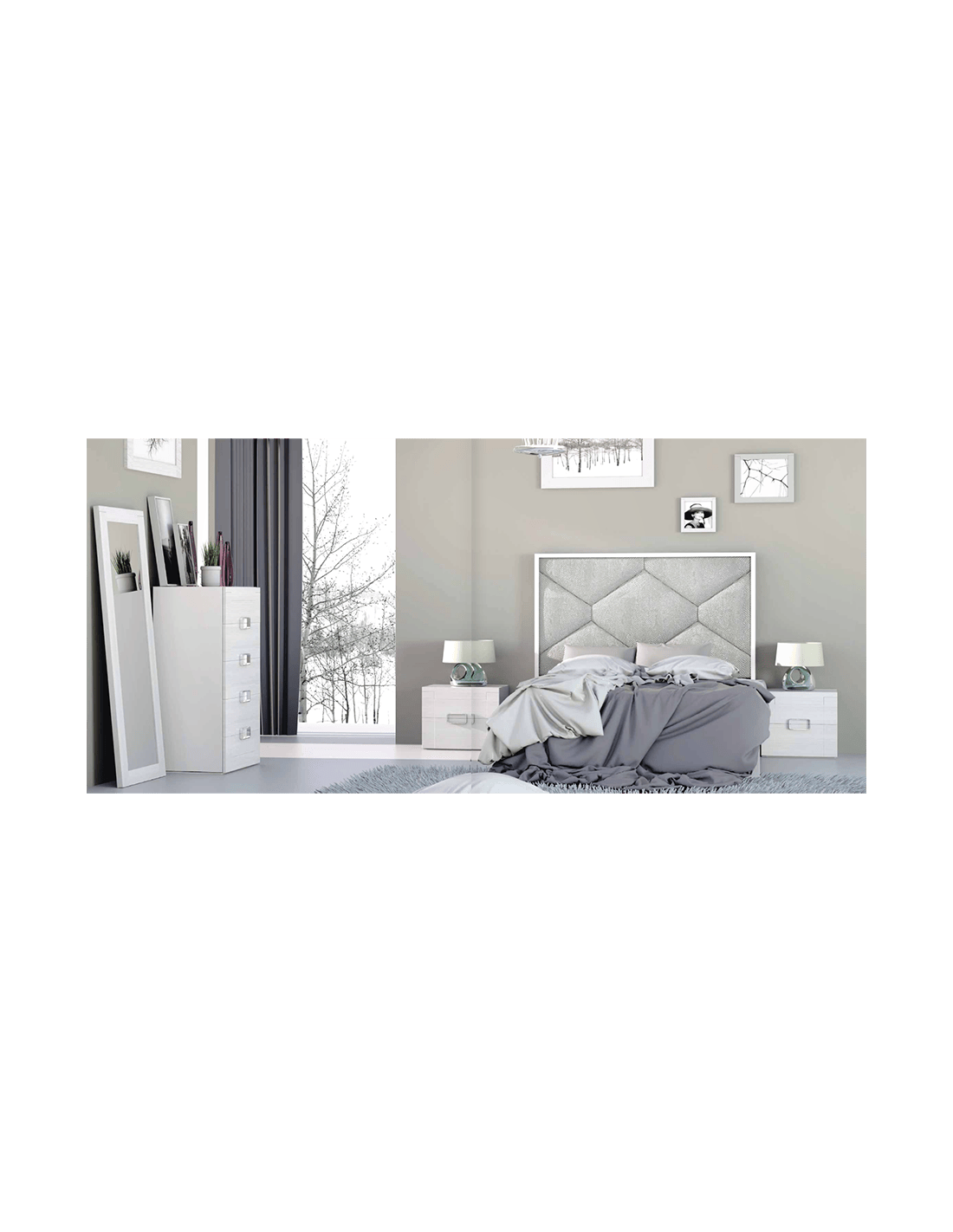 Conjunto de dormitorio de matrimonio con tiradores redondos y cabecero tapizado