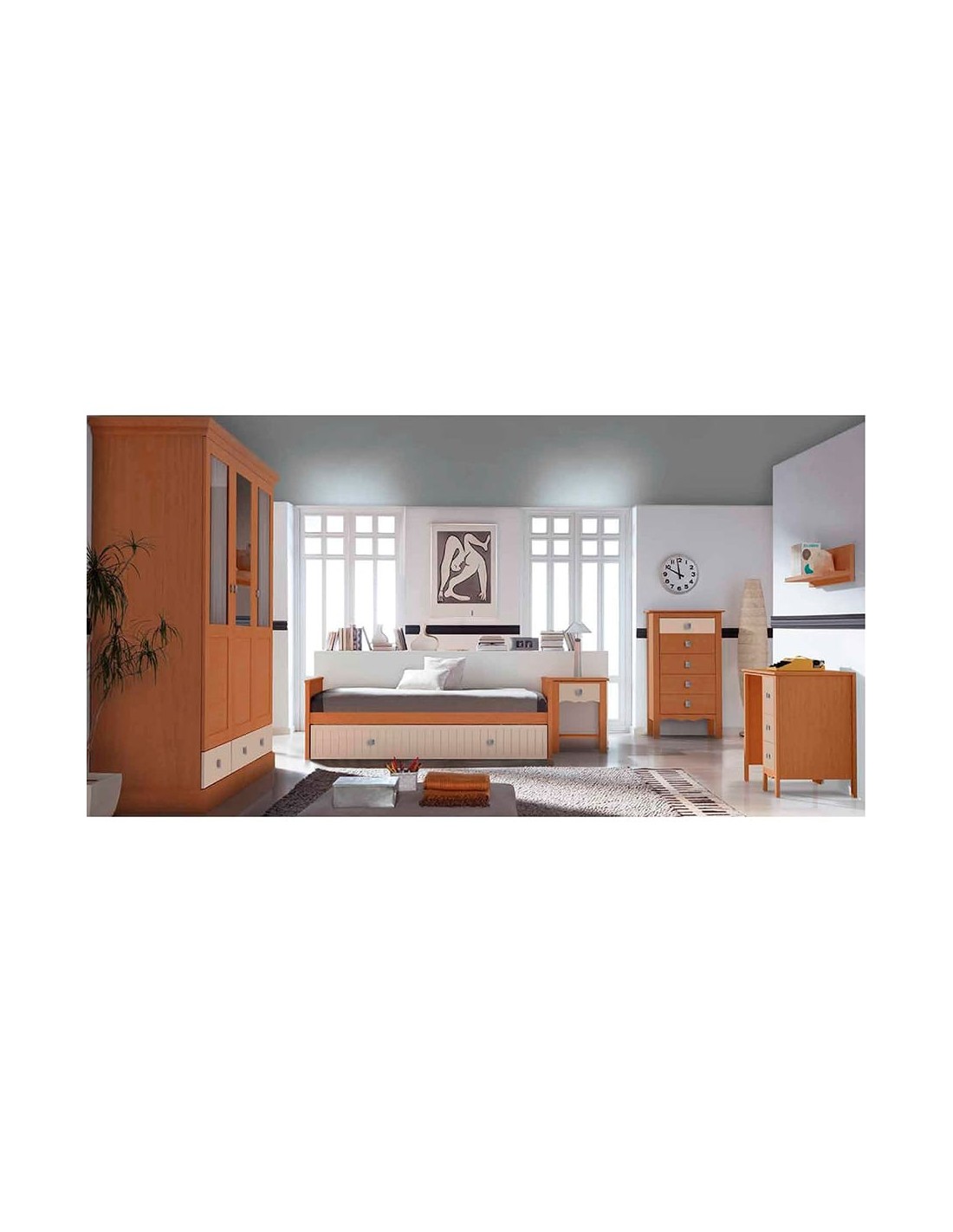 Conjunto de dormitorio juvenil con muebles bicolor y armario de 3 puertas
