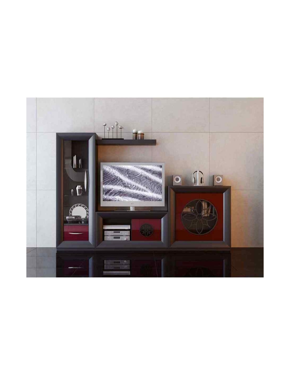 Conjunto de salon moderno modular con bajo de television vitrinas alta calidad (33)