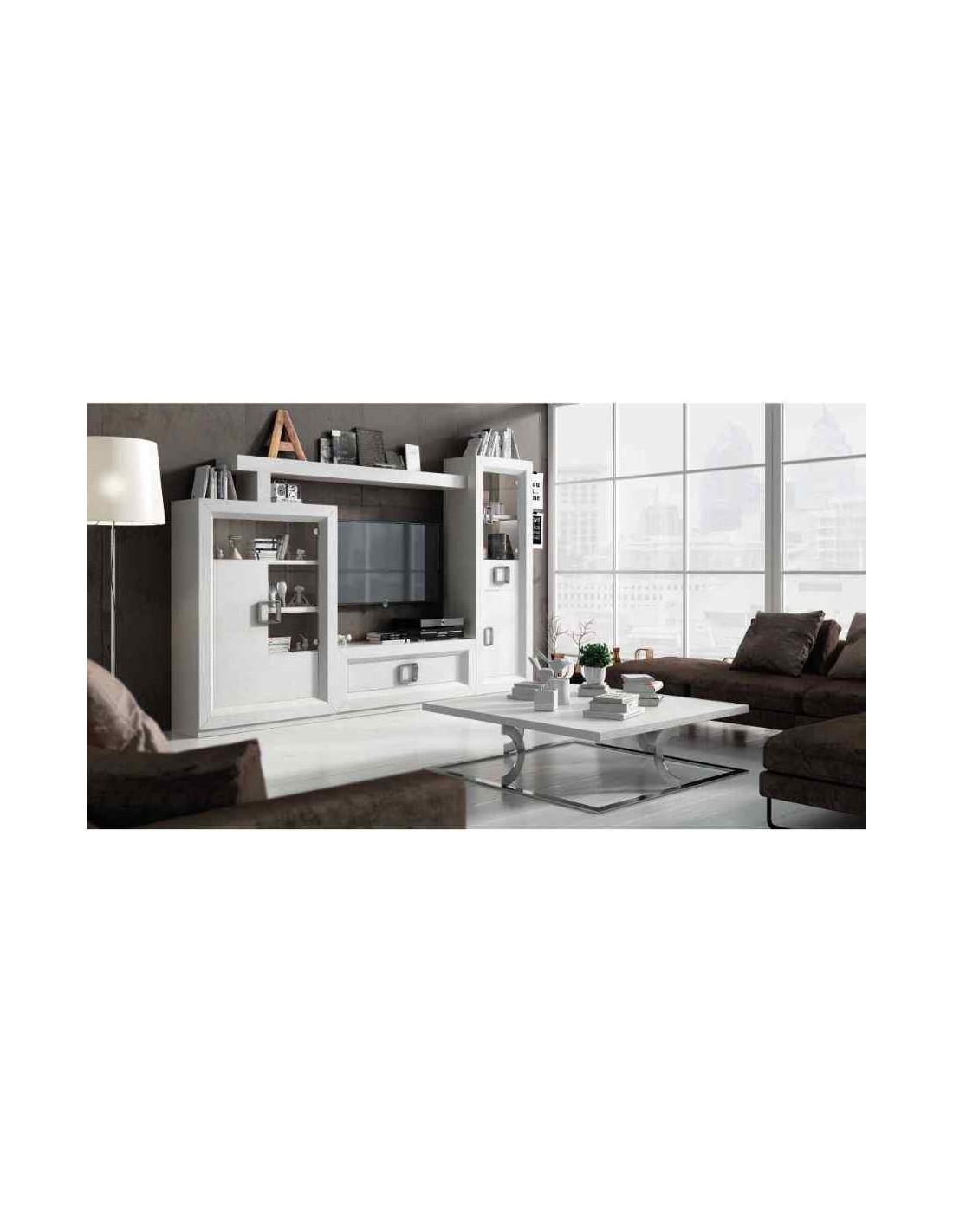 Conjunto de salon muebles lacados elegante de alta gama vitrinas bajos de tv aparador mesas sillas (14)