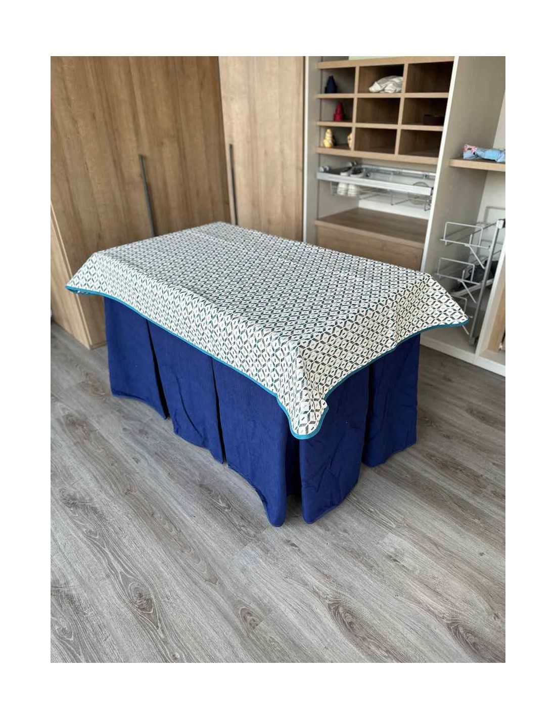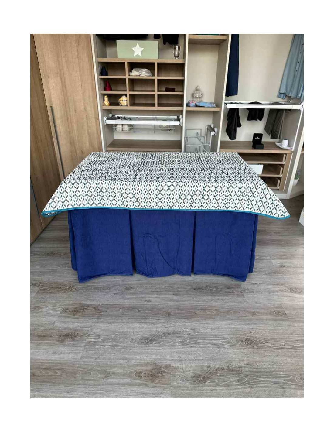 Confeccionada con 10 pliegues para mantener el calor de manera eficiente. Las tablas comunmente llamados pliegues, favorecen la retención de la temperatura impidiendo escapar el calor cuando nos sentamos en la mesa y nos cubrimos con ella. Gracias a nuestro diseño en los fuelles la falda de mesa camilla caerá cubriéndono los laterales e impidiendo que escape el calor.