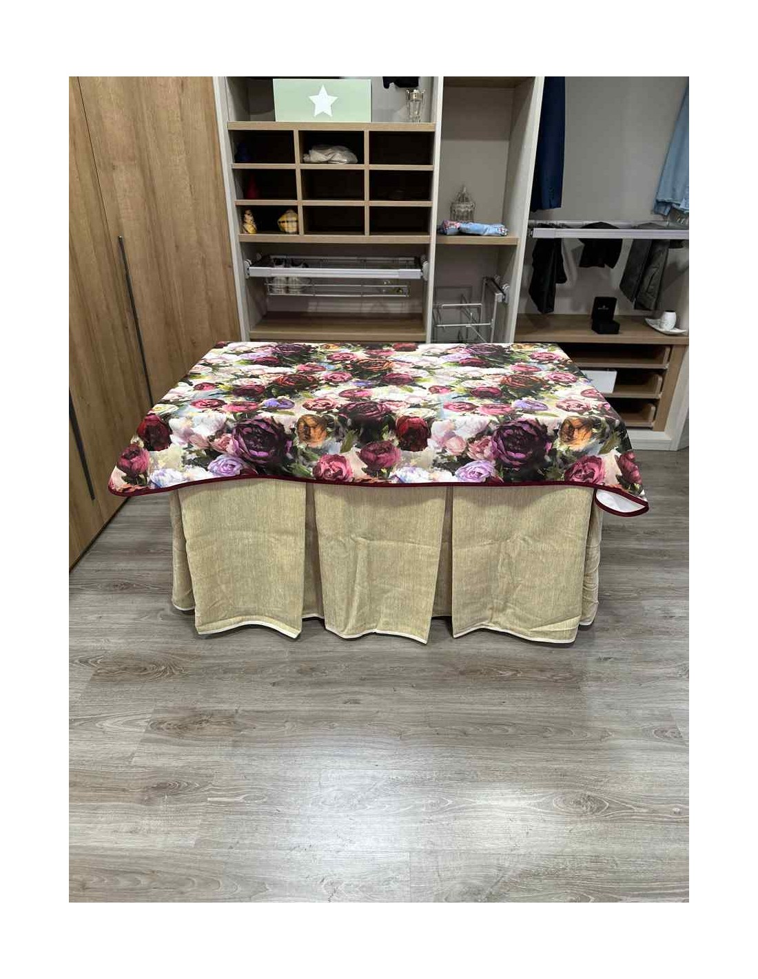 Confeccionada con 10 pliegues para mantener el calor de manera eficiente. Las tablas comunmente llamados pliegues, favorecen la retención de la temperatura impidiendo escapar el calor cuando nos sentamos en la mesa y nos cubrimos con ella. Gracias a nuestro diseño en los fuelles la falda de mesa camilla caerá cubriéndono los laterales e impidiendo que escape el calor.