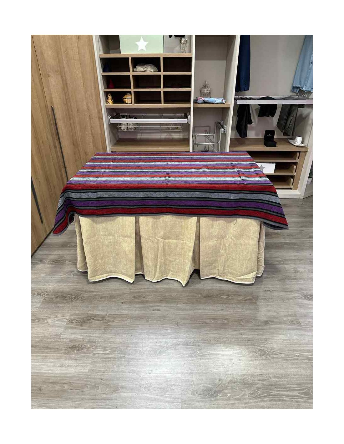 Confeccionada con 10 pliegues para mantener el calor de manera eficiente. Las tablas comunmente llamados pliegues, favorecen la retención de la temperatura impidiendo escapar el calor cuando nos sentamos en la mesa y nos cubrimos con ella. Gracias a nuestro diseño en los fuelles la falda de mesa camilla caerá cubriéndono los laterales e impidiendo que escape el calor.