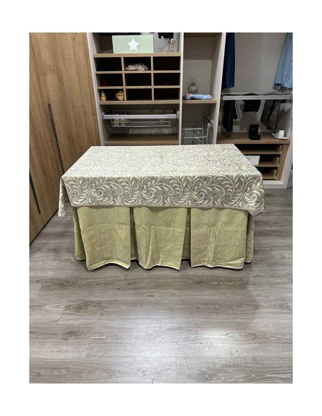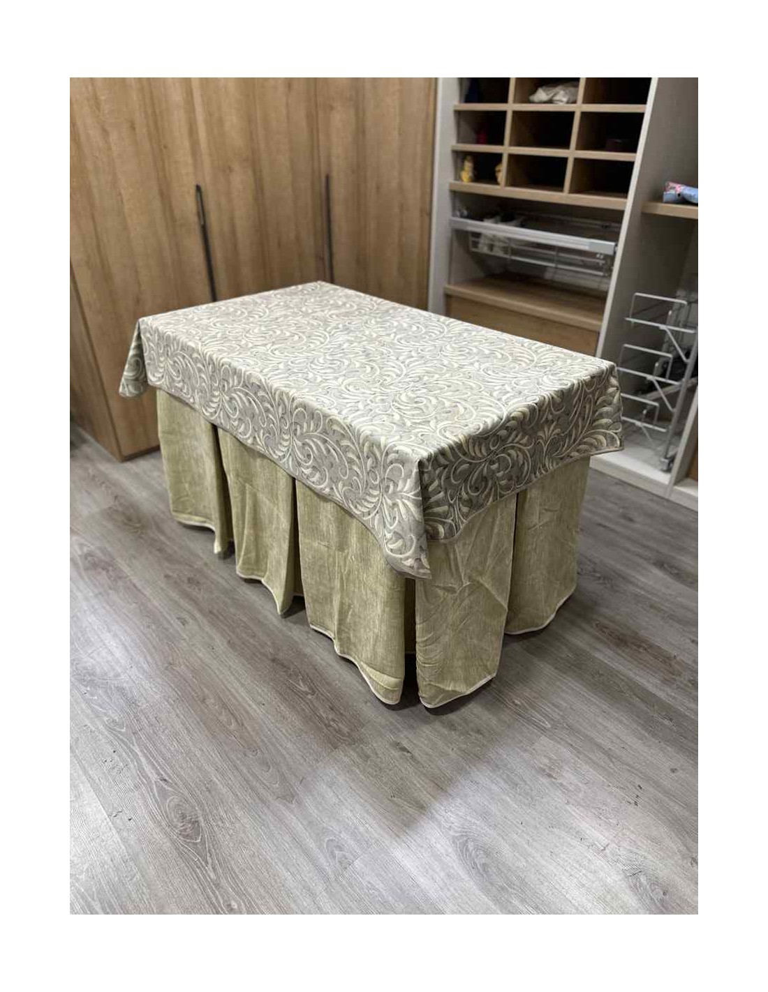 Confeccionada con 10 pliegues para mantener el calor de manera eficiente. Las tablas comunmente llamados pliegues, favorecen la retención de la temperatura impidiendo escapar el calor cuando nos sentamos en la mesa y nos cubrimos con ella. Gracias a nuestro diseño en los fuelles la falda de mesa camilla caerá cubriéndono los laterales e impidiendo que escape el calor.