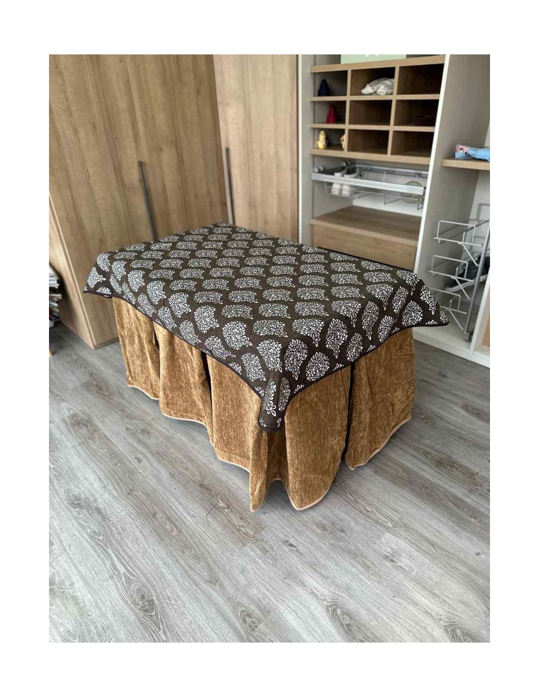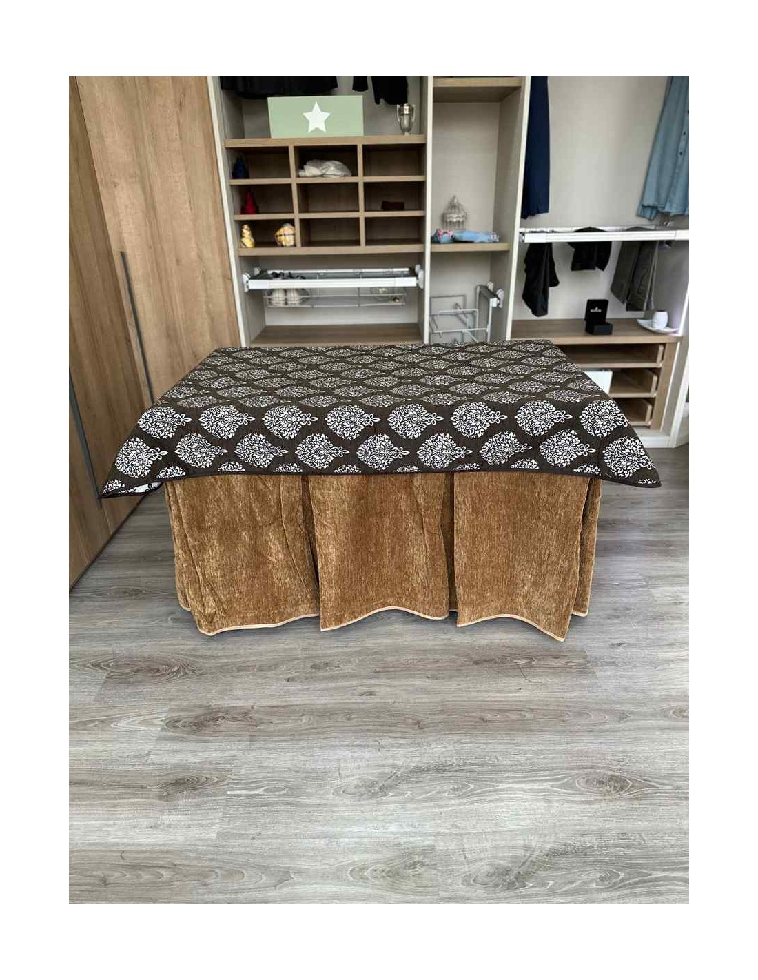 Confeccionada con 10 pliegues para mantener el calor de manera eficiente. Las tablas comunmente llamados pliegues, favorecen la retención de la temperatura impidiendo escapar el calor cuando nos sentamos en la mesa y nos cubrimos con ella. Gracias a nuestro diseño en los fuelles la falda de mesa camilla caerá cubriéndono los laterales e impidiendo que escape el calor.