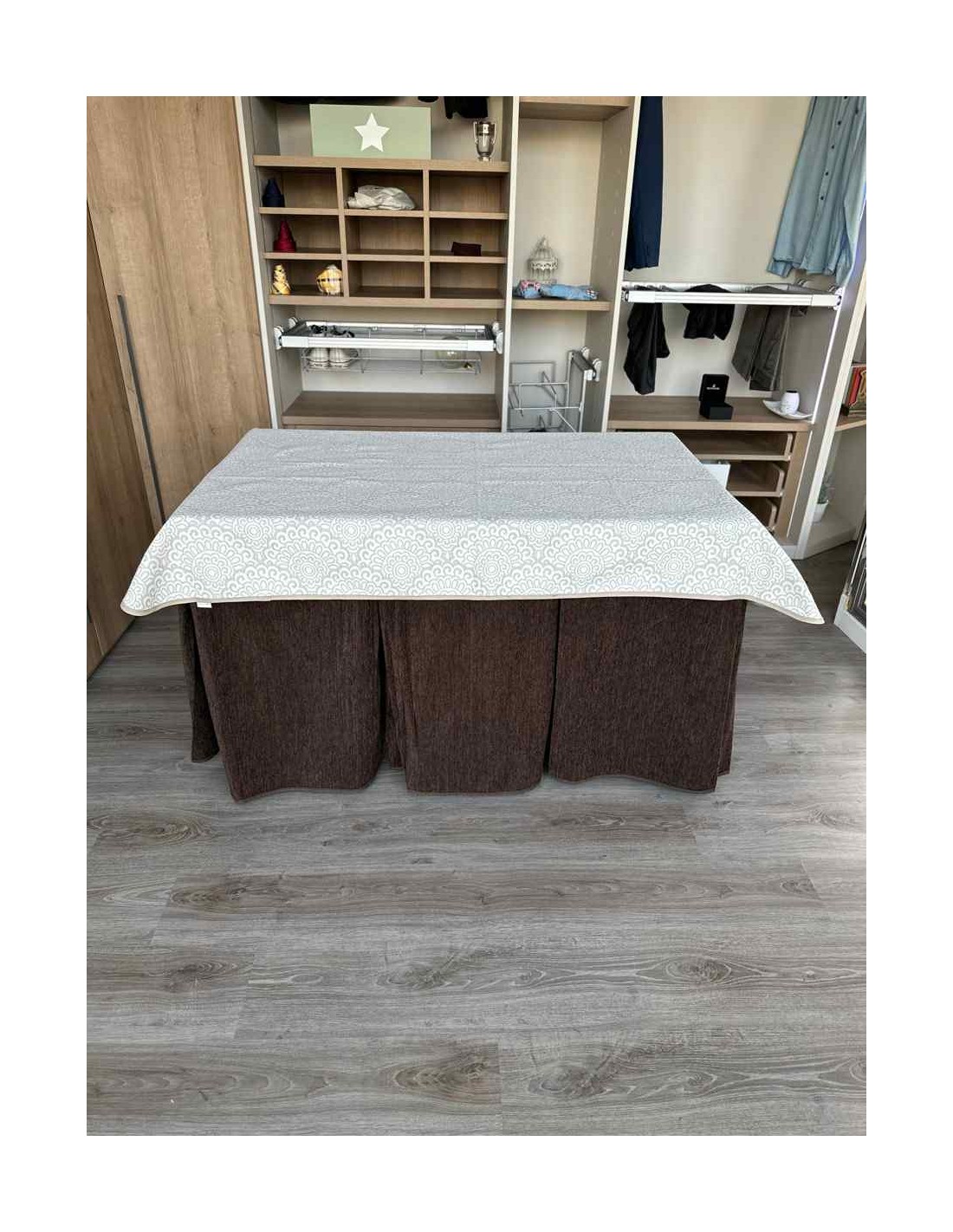 Disfruta la calidez de esta ropa de mesa camilla con tejido Doble Grueso de 10 pliegues reforzado con tapete. Tacto suave y agradable, mantiene la temperatura facilitando el ahorro de consumo energético.Elaborado con tejido de gran calidad, sus dos capas de grosor generan una agradable sensación de calor.