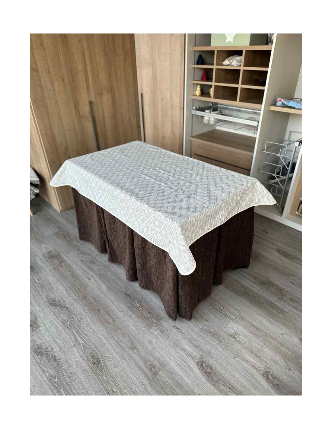 Confeccionada con 10 pliegues para mantener el calor de manera eficiente. Las tablas comunmente llamados pliegues, favorecen la retención de la temperatura impidiendo escapar el calor cuando nos sentamos en la mesa y nos cubrimos con ella. Gracias a nuestro diseño en los fuelles la falda de mesa camilla caerá cubriéndono los laterales e impidiendo que escape el calor.