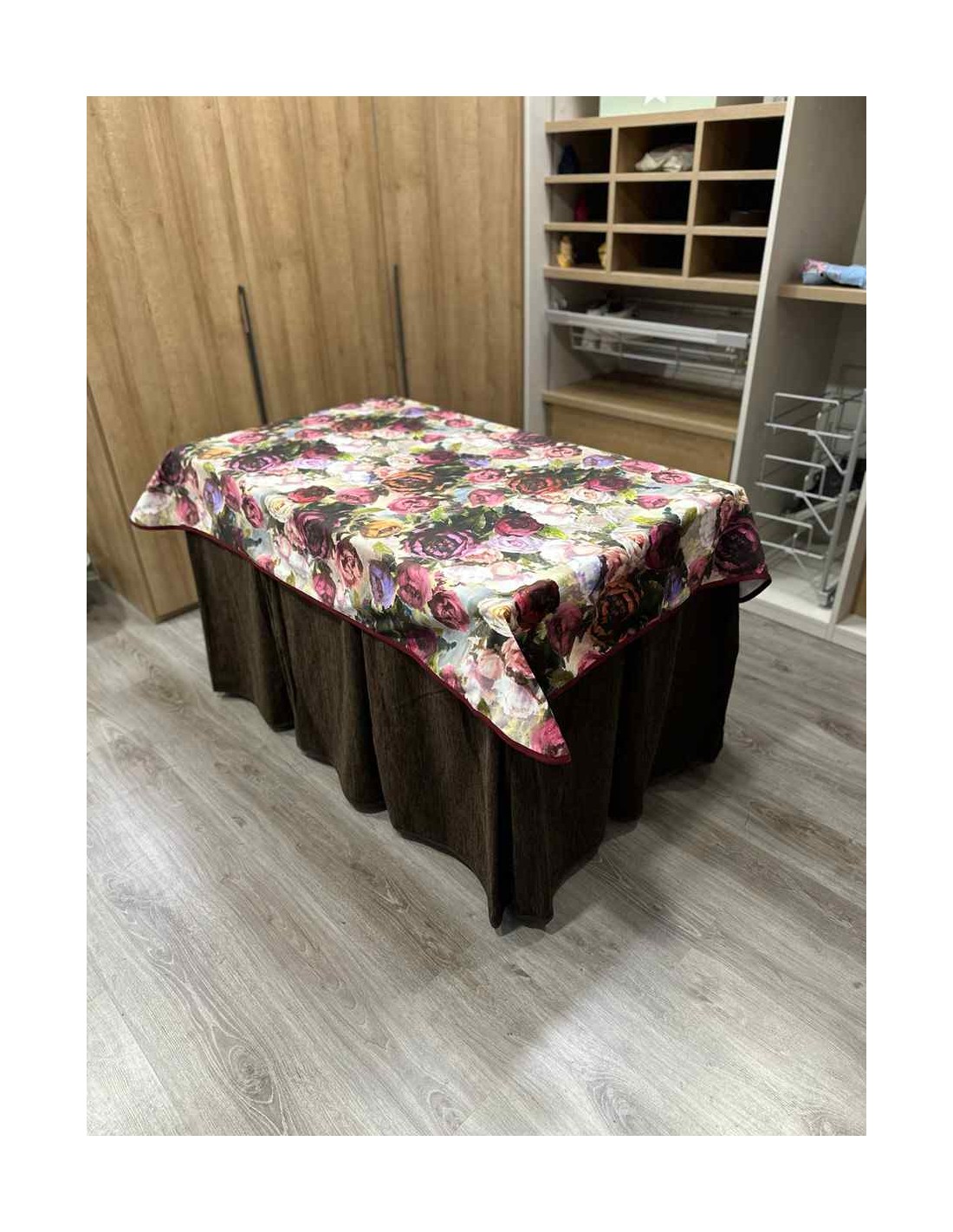 Conjunto Doble Grueso 10 Pliegues Chocolate con Tapete Flores