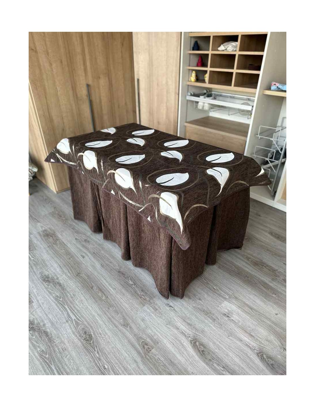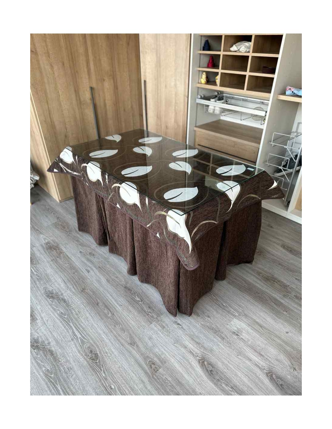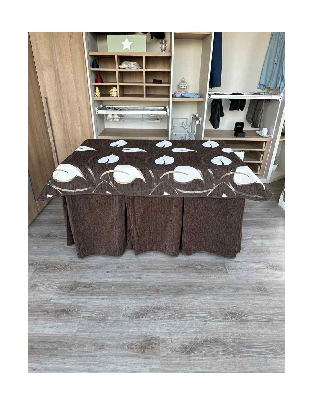 Confeccionada con 10 pliegues para mantener el calor de manera eficiente. Las tablas comunmente llamados pliegues, favorecen la retención de la temperatura impidiendo escapar el calor cuando nos sentamos en la mesa y nos cubrimos con ella. Gracias a nuestro diseño en los fuelles la falda de mesa camilla caerá cubriéndono los laterales e impidiendo que escape el calor.
