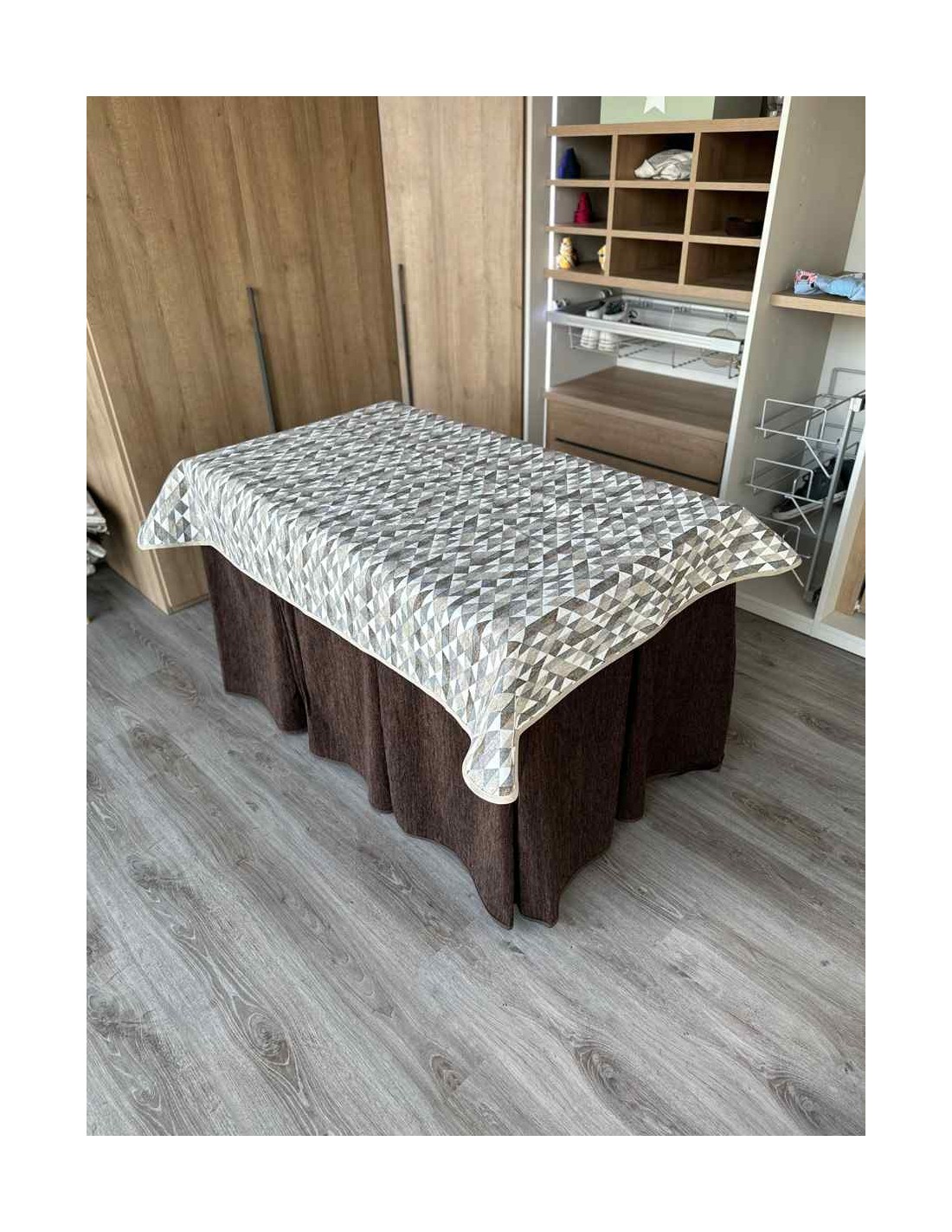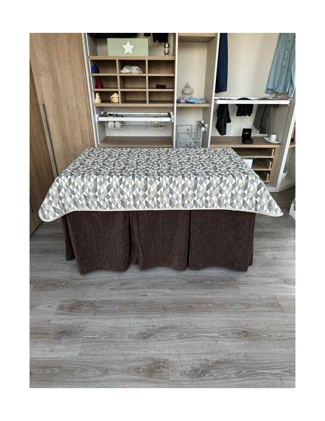 Confeccionada con 10 pliegues para mantener el calor de manera eficiente. Las tablas comunmente llamados pliegues, favorecen la retención de la temperatura impidiendo escapar el calor cuando nos sentamos en la mesa y nos cubrimos con ella. Gracias a nuestro diseño en los fuelles la falda de mesa camilla caerá cubriéndono los laterales e impidiendo que escape el calor.