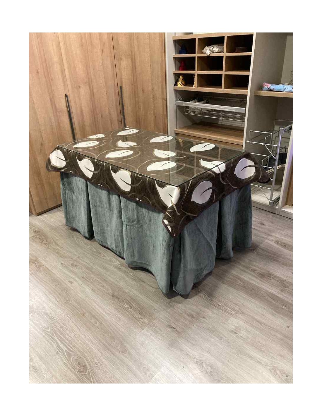 Confeccionada con 10 pliegues para mantener el calor de manera eficiente. Las tablas comunmente llamados pliegues, favorecen la retención de la temperatura impidiendo escapar el calor cuando nos sentamos en la mesa y nos cubrimos con ella. Gracias a nuestro diseño en los fuelles la falda de mesa camilla caerá cubriéndono los laterales e impidiendo que escape el calor.
