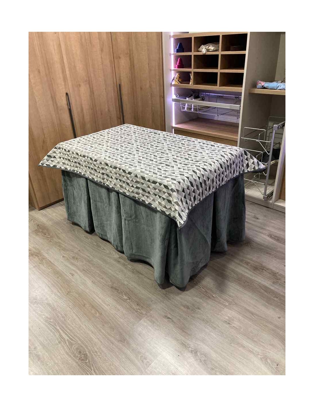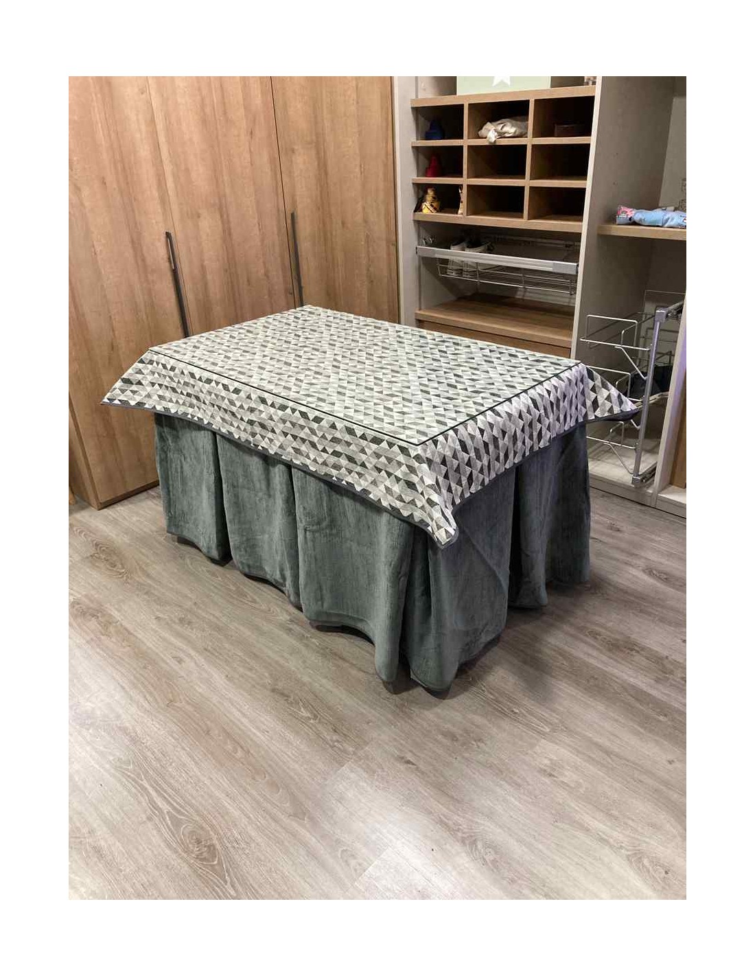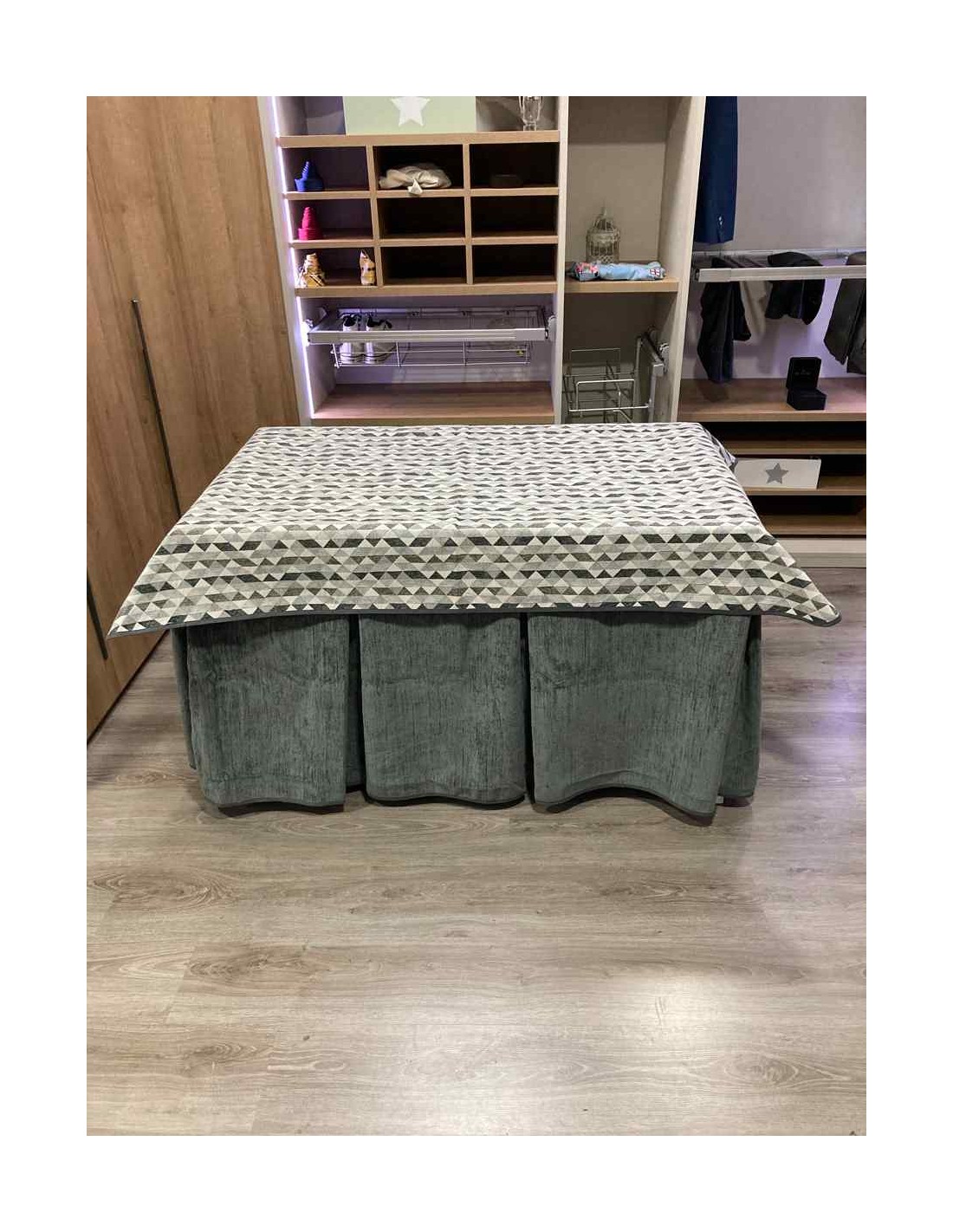 Confeccionada con 10 pliegues para mantener el calor de manera eficiente. Las tablas comunmente llamados pliegues, favorecen la retención de la temperatura impidiendo escapar el calor cuando nos sentamos en la mesa y nos cubrimos con ella. Gracias a nuestro diseño en los fuelles la falda de mesa camilla caerá cubriéndono los laterales e impidiendo que escape el calor.