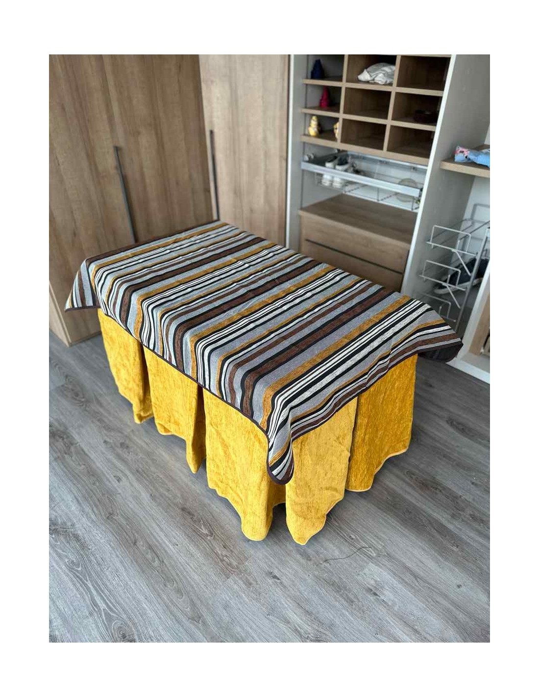 Confeccionada con 10 pliegues para mantener el calor de manera eficiente. Las tablas comunmente llamados pliegues, favorecen la retención de la temperatura impidiendo escapar el calor cuando nos sentamos en la mesa y nos cubrimos con ella. Gracias a nuestro diseño en los fuelles la falda de mesa camilla caerá cubriéndono los laterales e impidiendo que escape el calor.