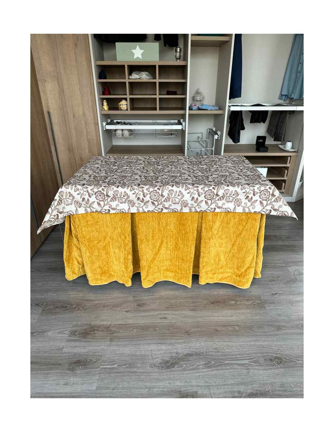 Confeccionada con 10 pliegues para mantener el calor de manera eficiente. Las tablas comunmente llamados pliegues, favorecen la retención de la temperatura impidiendo escapar el calor cuando nos sentamos en la mesa y nos cubrimos con ella. Gracias a nuestro diseño en los fuelles la falda de mesa camilla caerá cubriéndono los laterales e impidiendo que escape el calor.
