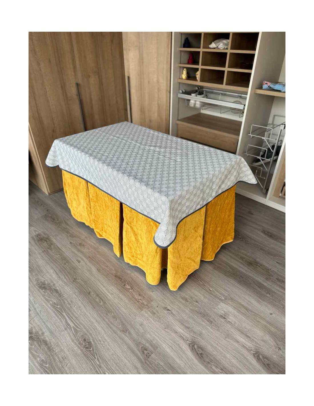 Conjunto Doble Grueso 10 Pliegues Mostaza con Tapete Rombos